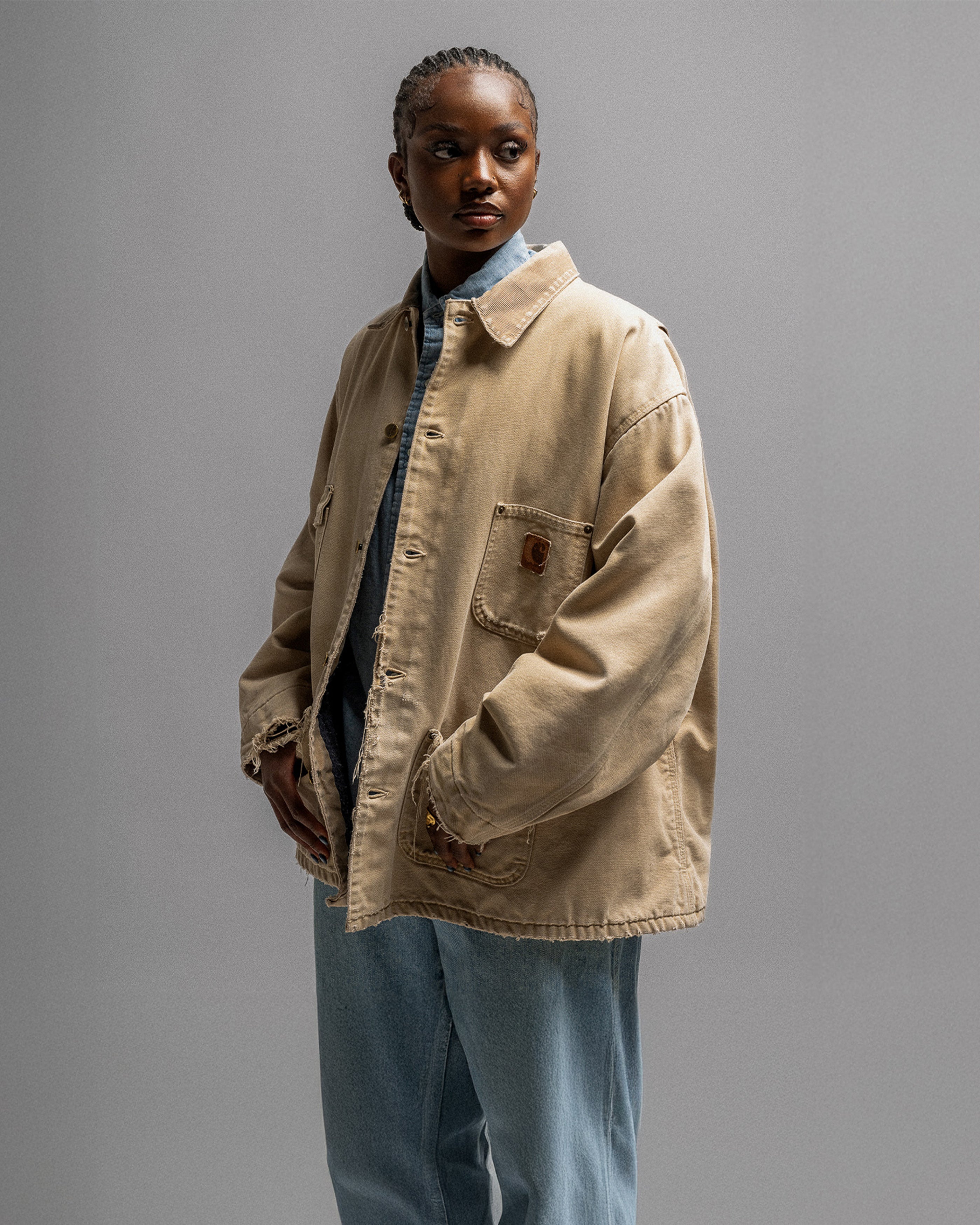 - Vintage Y2K Sun Faded Navy Carhartt Embroidered Hooded Active Jacket (S/M)