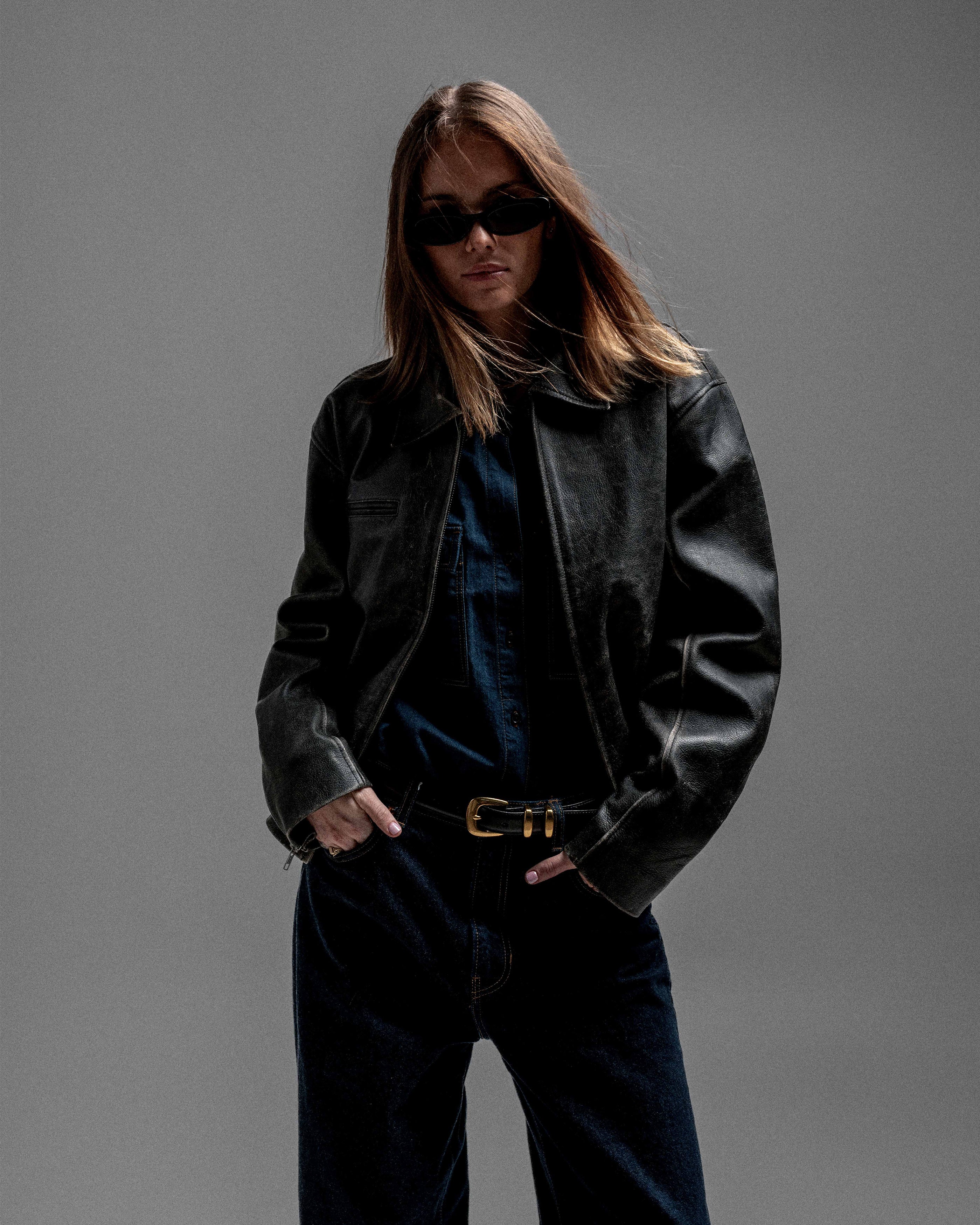 Regular price$665.00 USDSale price$598.00 USD - Everyday Boxy Leather Jacket - Brown