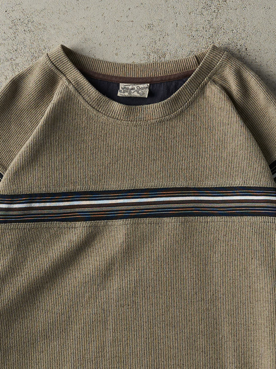 Vintage Y2K Beige Striped Thermal Long Sleeve (XXL)