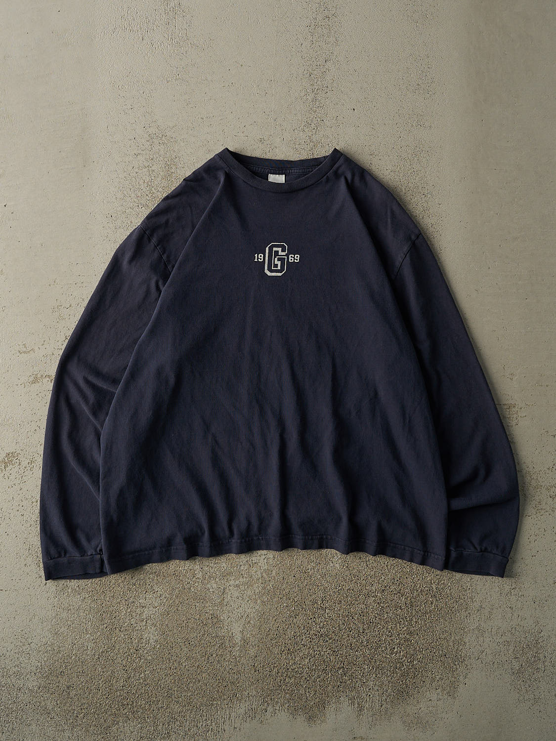 Vintage Y2K Navy Blue Russell Athletic Brock University Embroidered Hoodie (S/M)