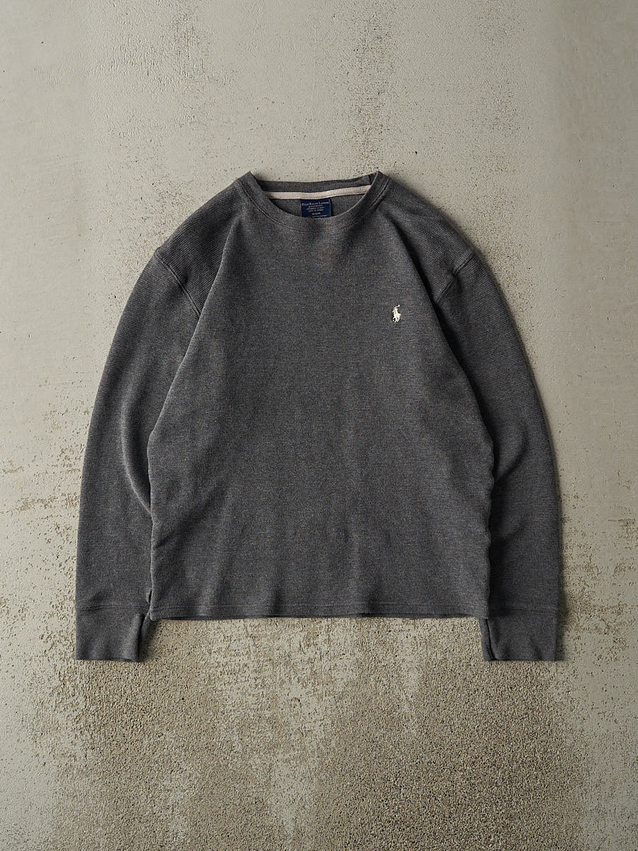 Vintage Y2K Charcoal Grey Polo Ralph Lauren Knit Quarter Zip (XL)