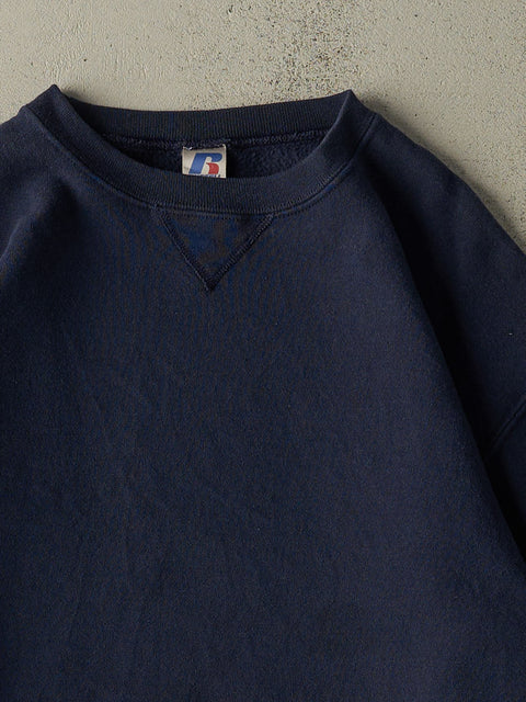 Vintage Y2K Navy Blue Russell Athletic Blank Crewneck (M)