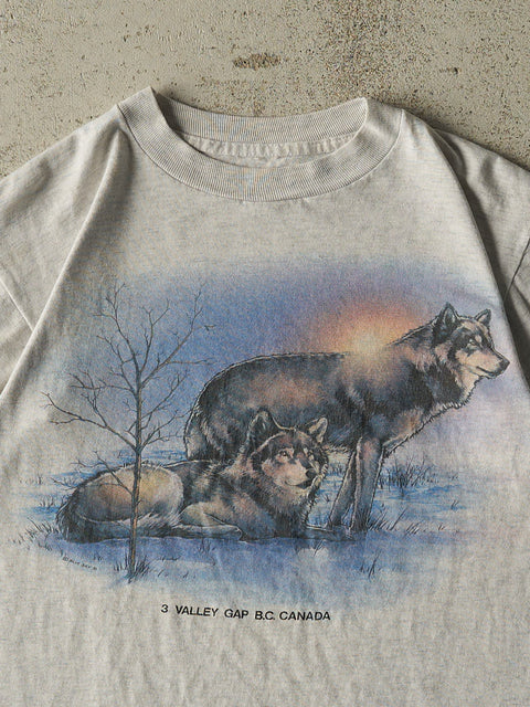 Vintage 90s Heather Grey BC Canada Wolf Single Stitch Tee (XS)