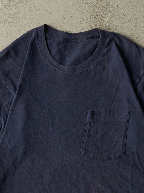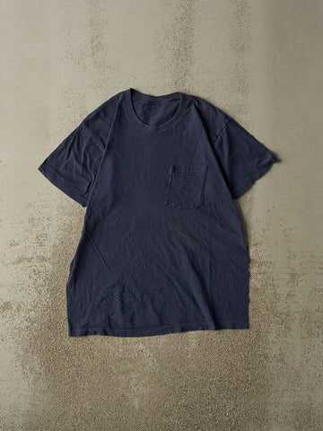 Vintage 80s Navy Blue Blank Single Stitch Pocket Tee (M/L)