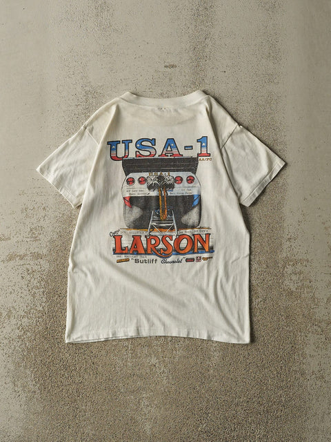 Vintage 85' White Bruce Larson Single Stitch Racing Tee (XS/S)