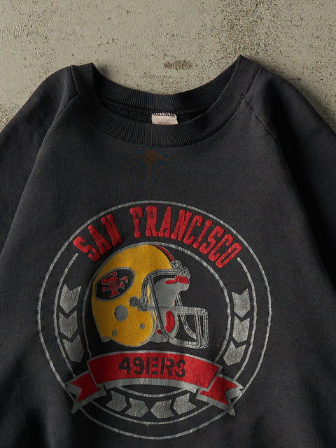 Vintage 80s Faded Black San Francisco 49ers Cropped Crewneck (XS/S)