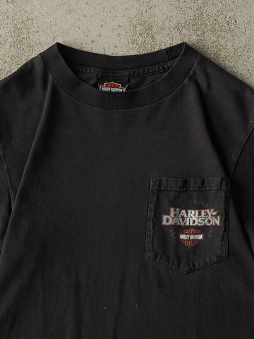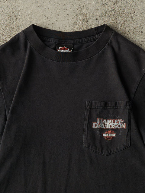 Regular price$51.00 USDSale price$27.00 USD - Vintage Y2K Faded Black Quebec Harley Davidson Pocket Tee (XS/S)