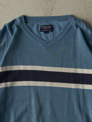 Vintage Y2K Slate Blue American Eagle Striped Thermal Long Sleeve (XXL)