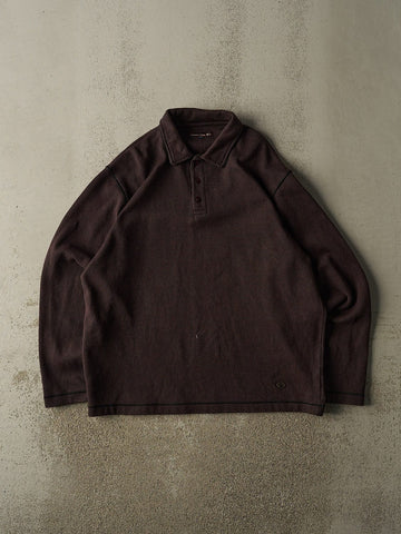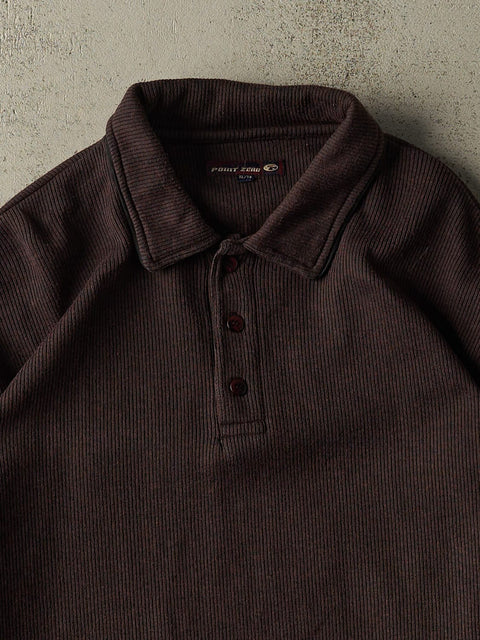 Vintage 90s Burgundy Point Zero Quarter Button Thermal Long Sleeve (XL)