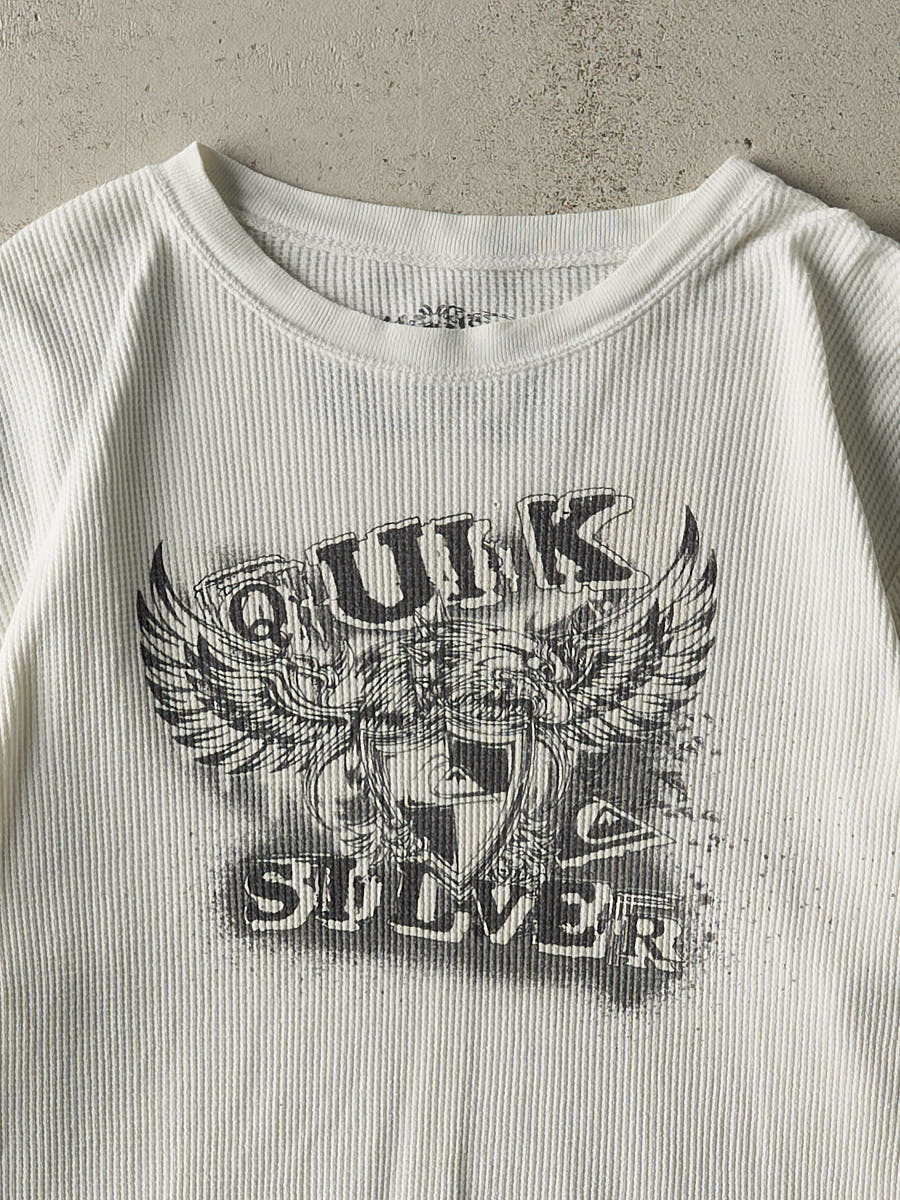 Vintage Y2K White Quiksilver Thermal Long Sleeve (L/XL)