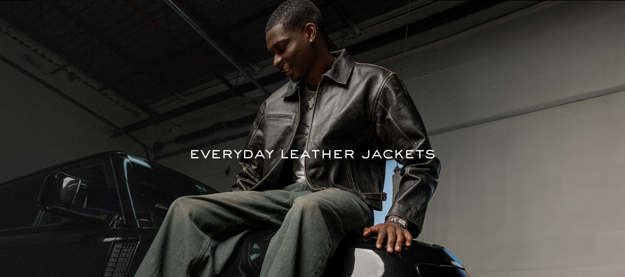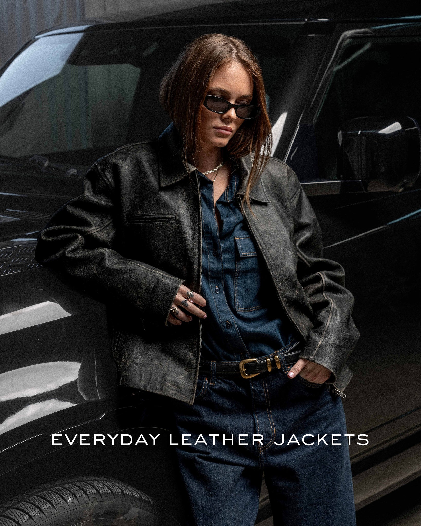 $673.00 USD - Everyday Boxy Leather Jacket - Washed Black