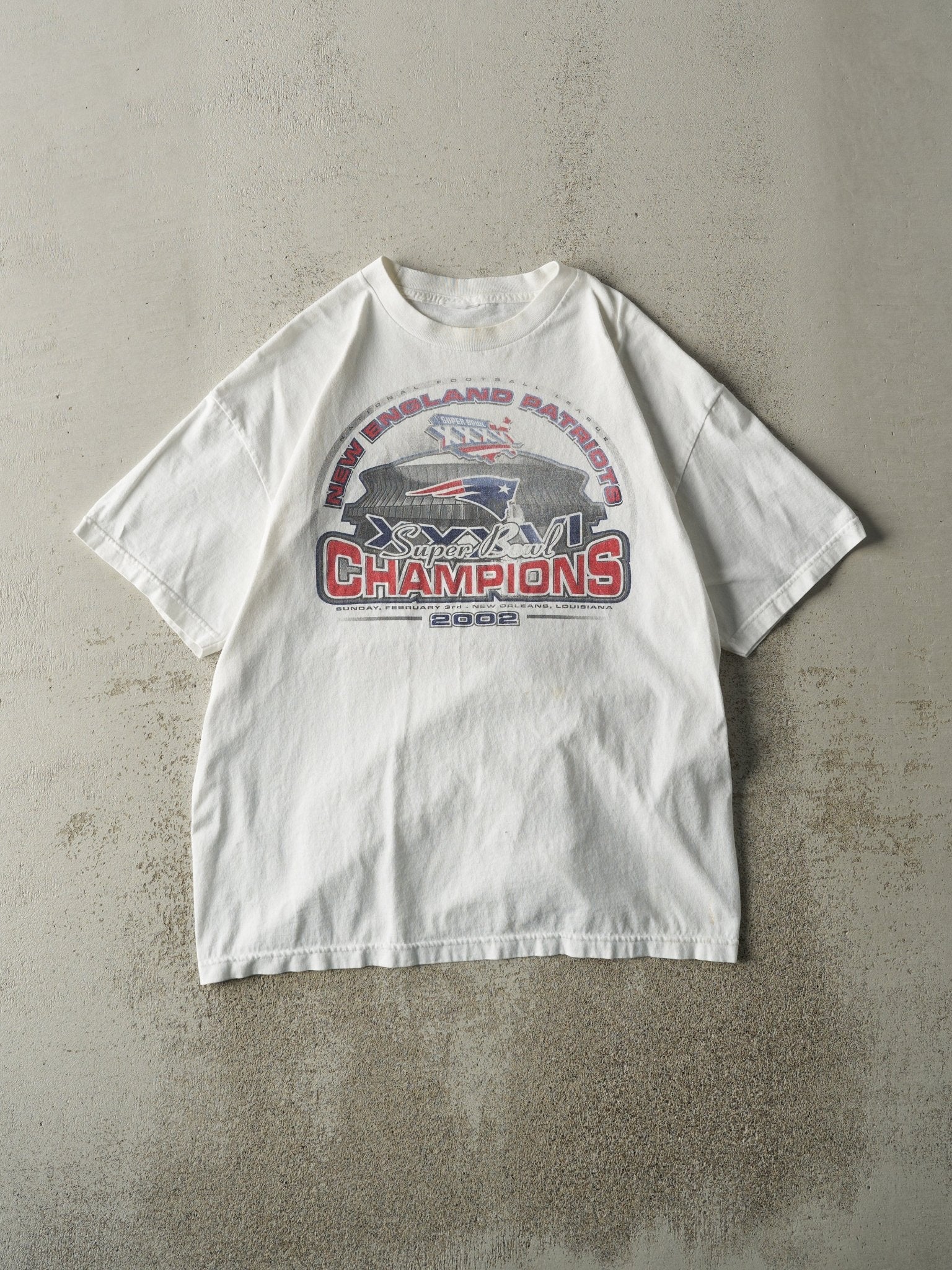 Vintage 02' White New England Patriots Super Bowl Champions Tee (M)