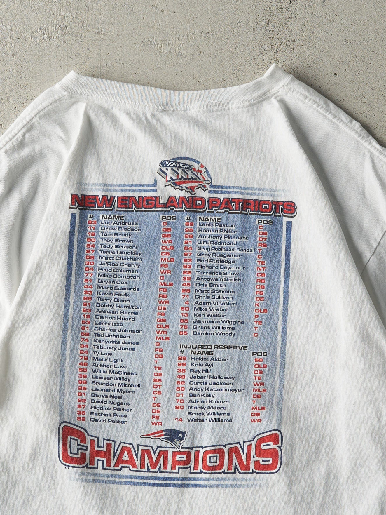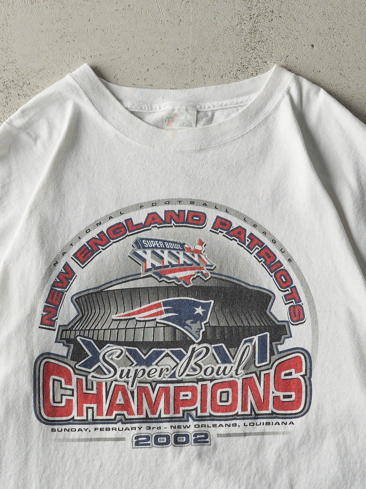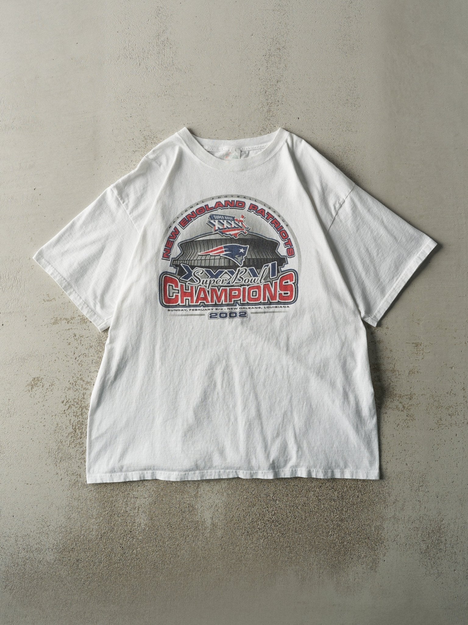 Vintage 02' White New England Patriots Super Bowl Champions Tee (XL)