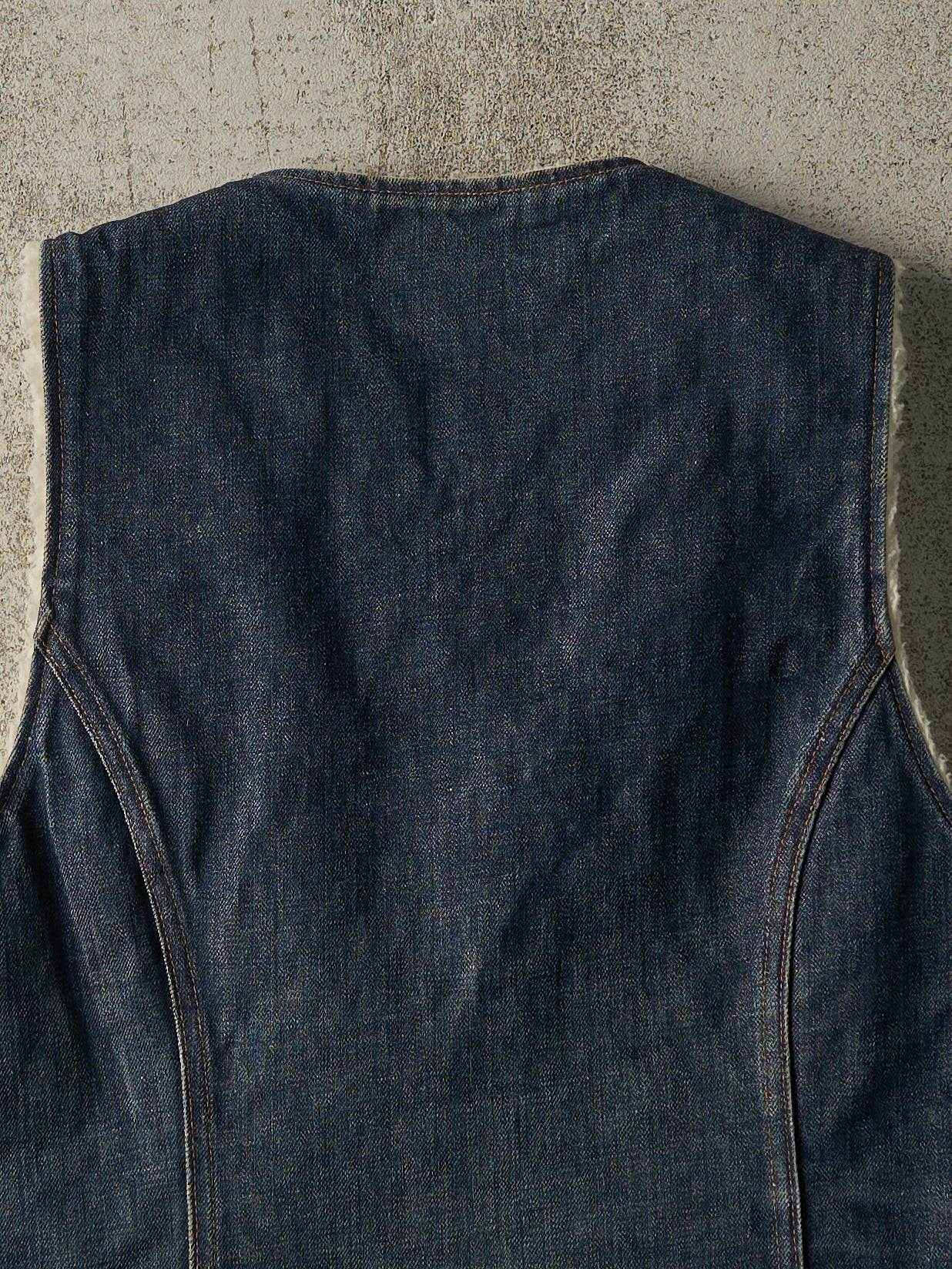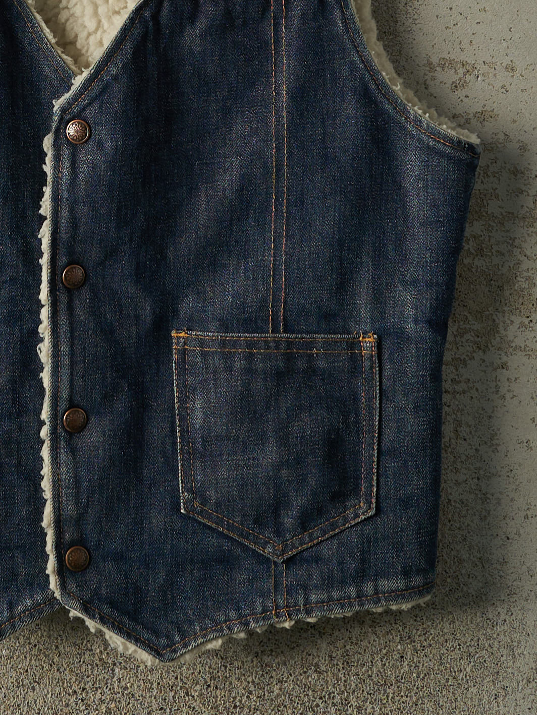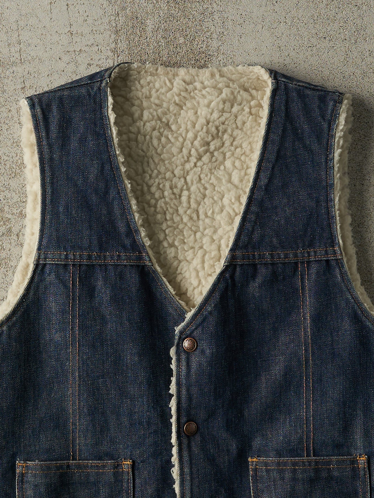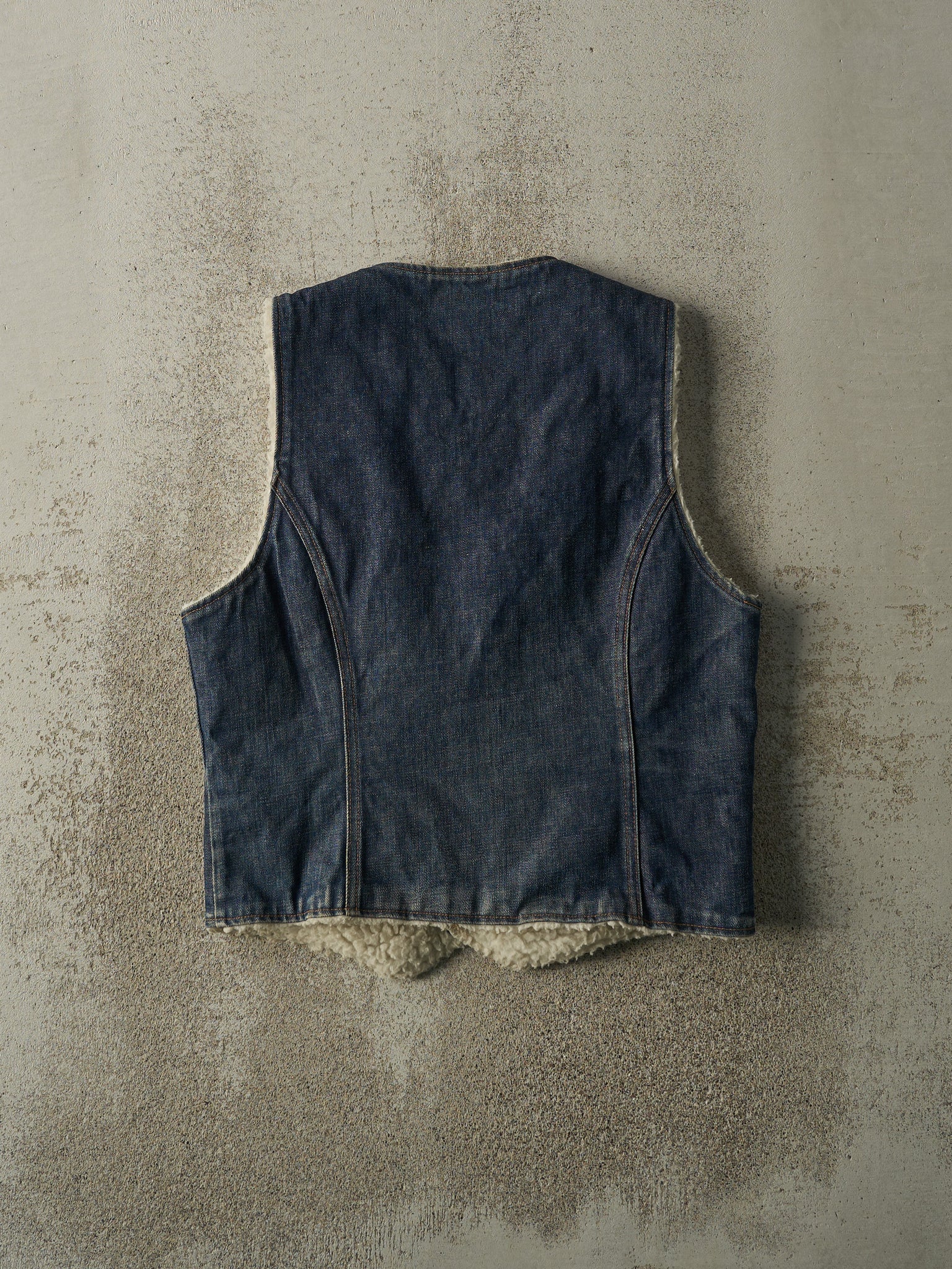 Vintage 70s Dark Wash Sherpa Lined Denim Vest (S/M)