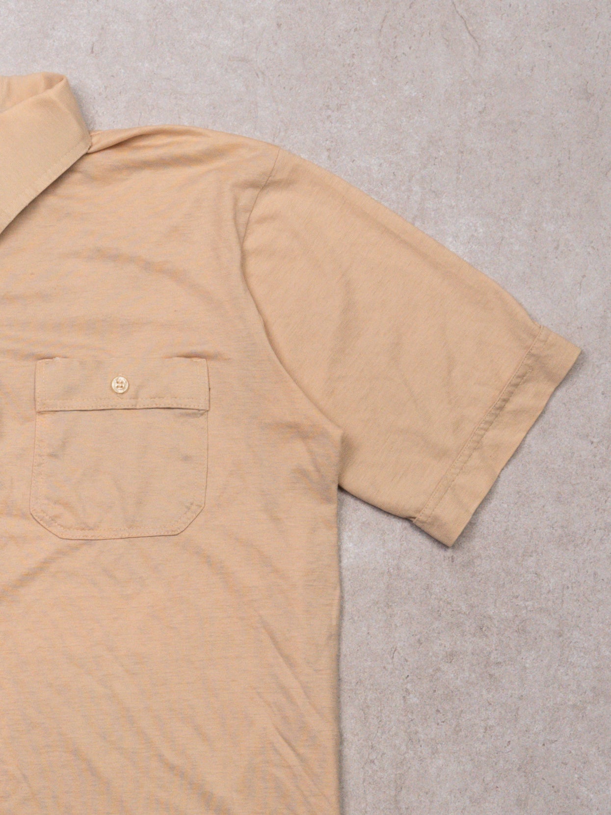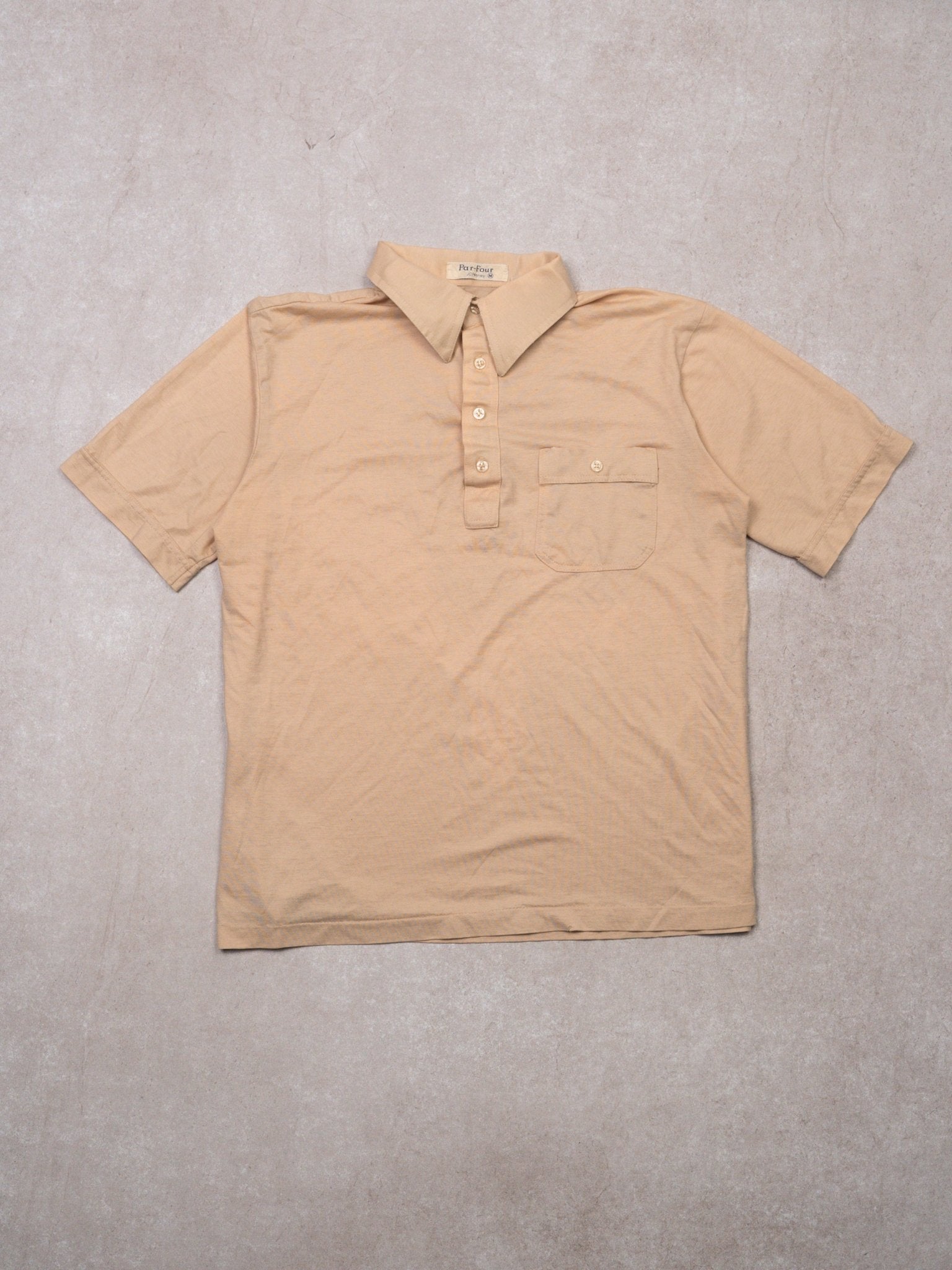 Vintage 70s J C Penny Beige Collared T Shirt (S)