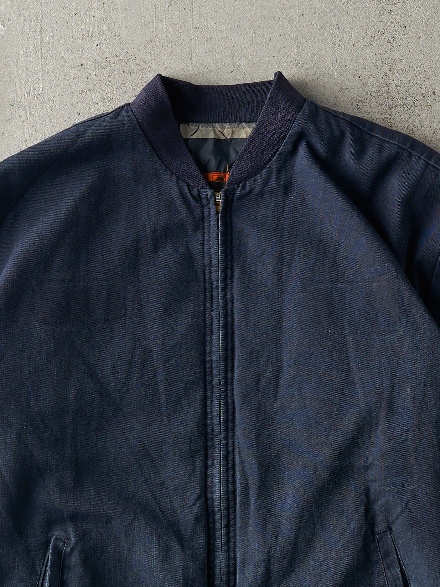 Vintage 70s Navy Blue Lined Bomber Work Jacket (L)