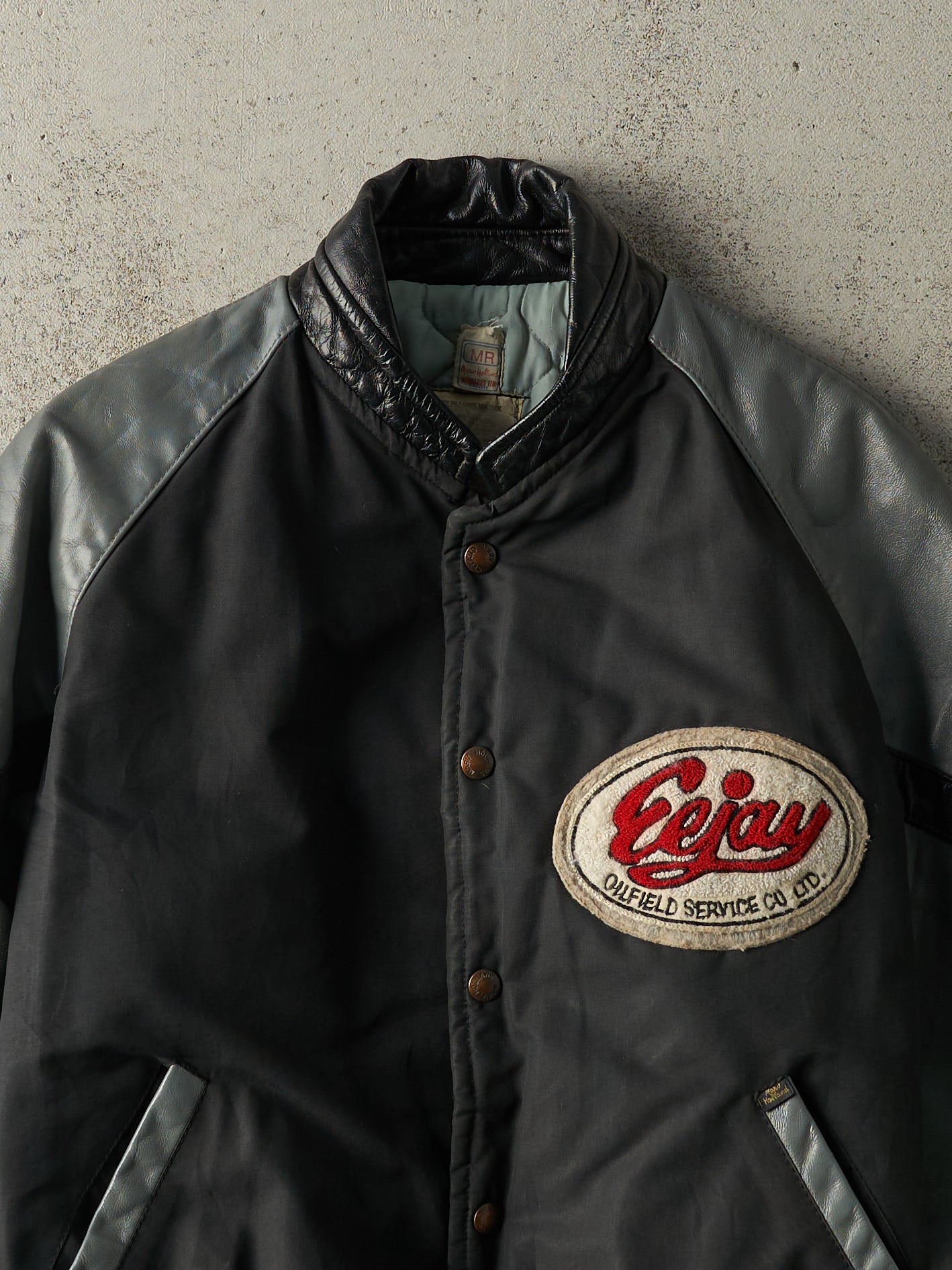 Vintage 80s Black & Grey Embroidered Nylon Work Jacket (M)