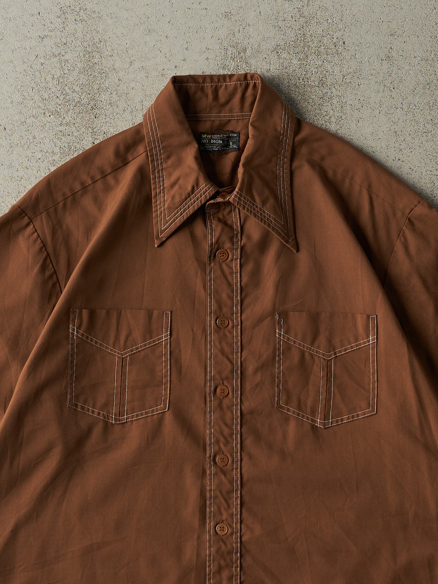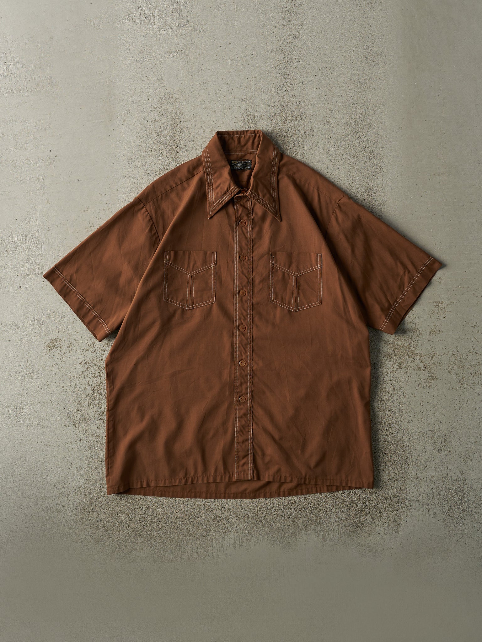 Vintage 80s Brown Western Short Sleeve Button Up (XL)