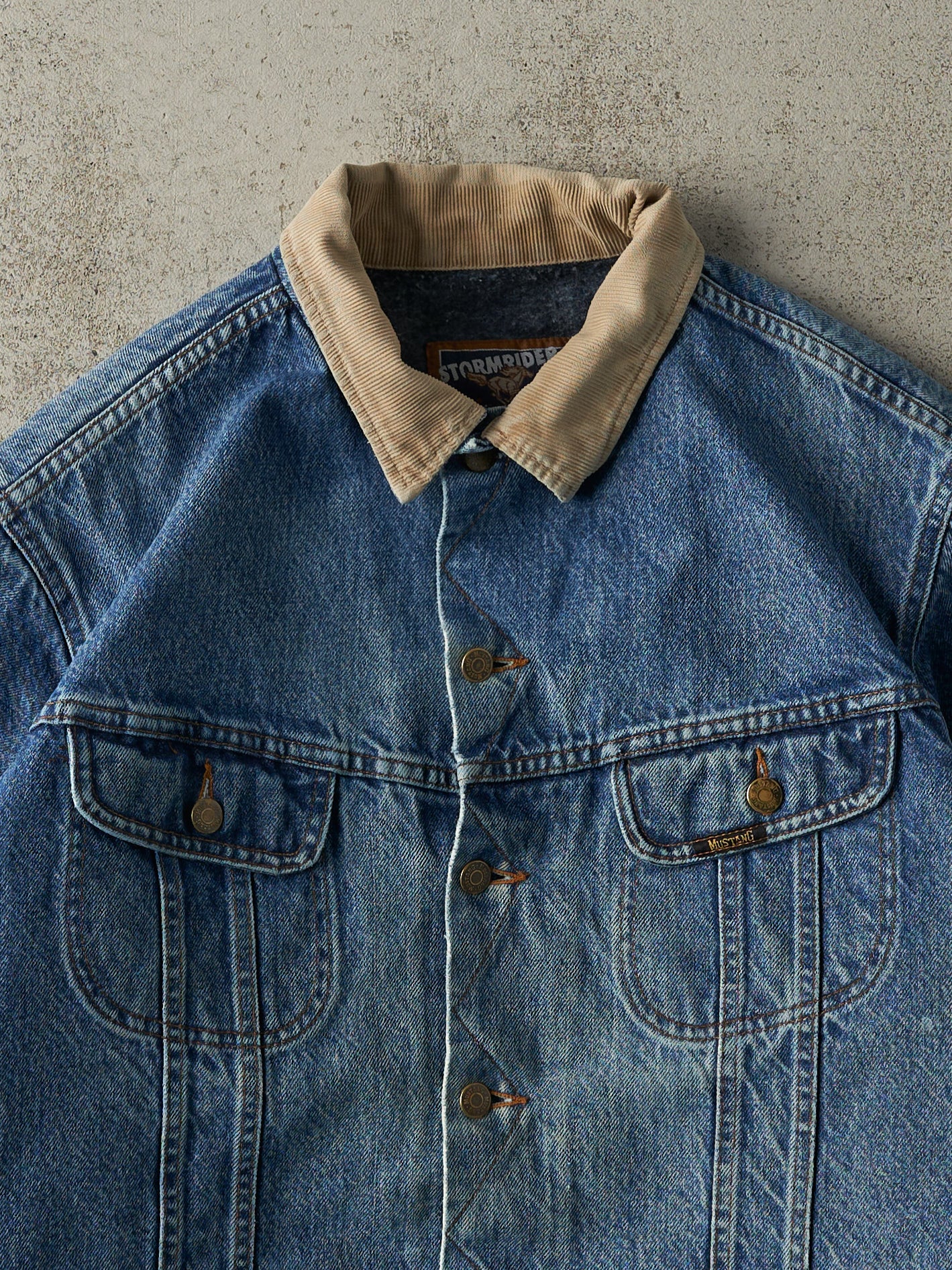 Vintage 80s Mid Wash Blanket Lined Storm Rider Mustang Denim Jacket (XL)