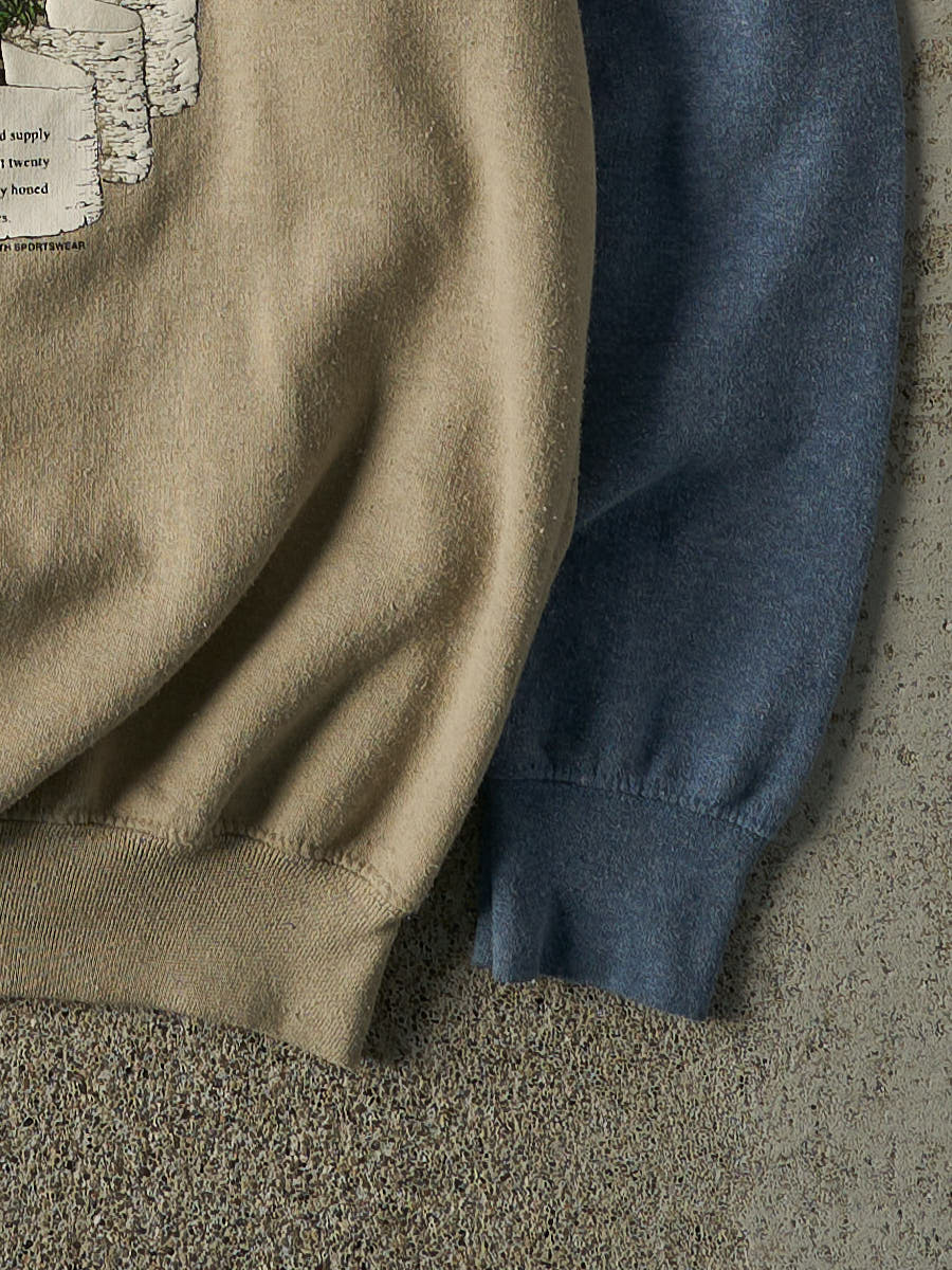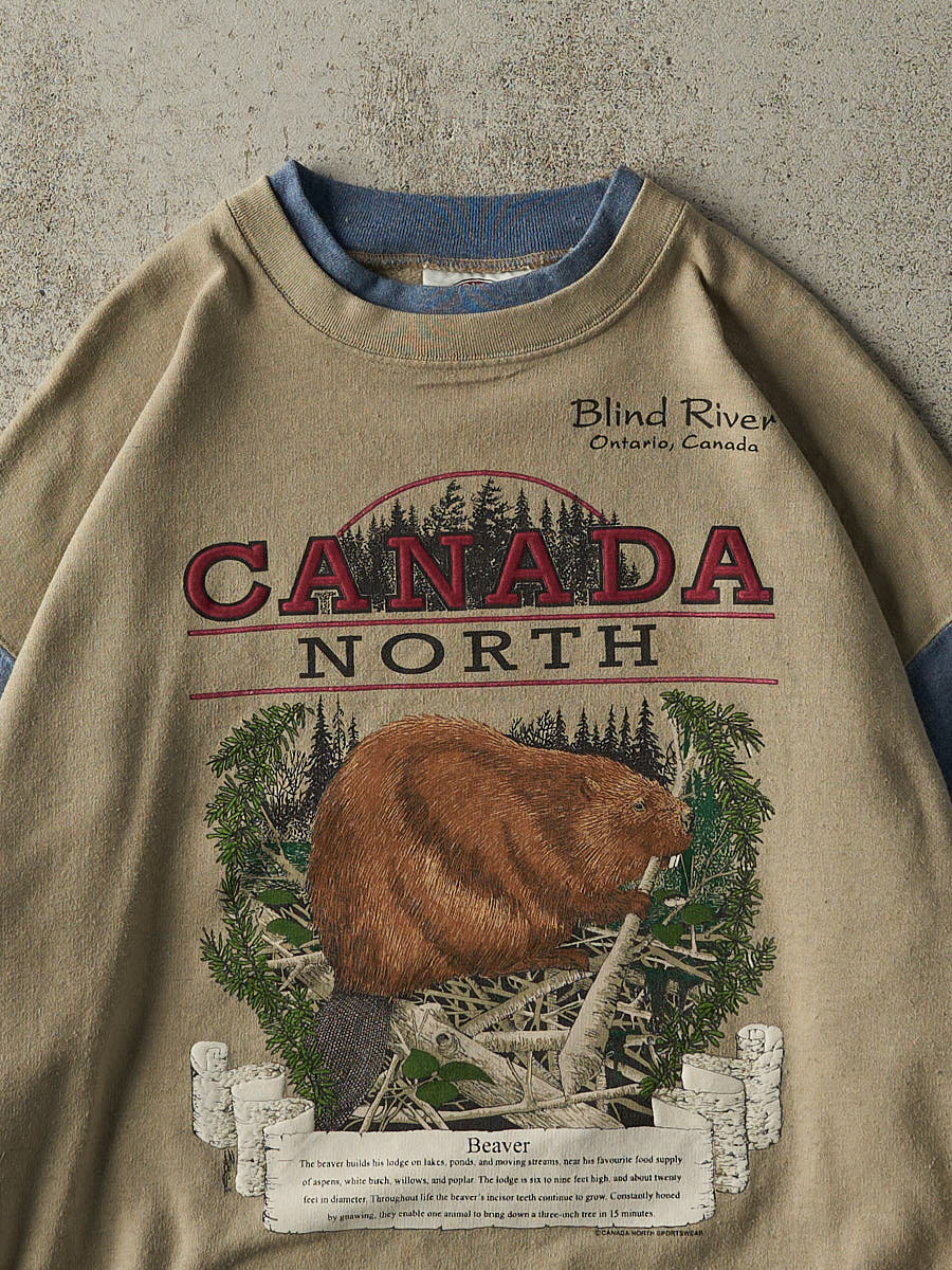 Vintage 90s Beige & Blue Canada North Beaver Crewneck (M/L)