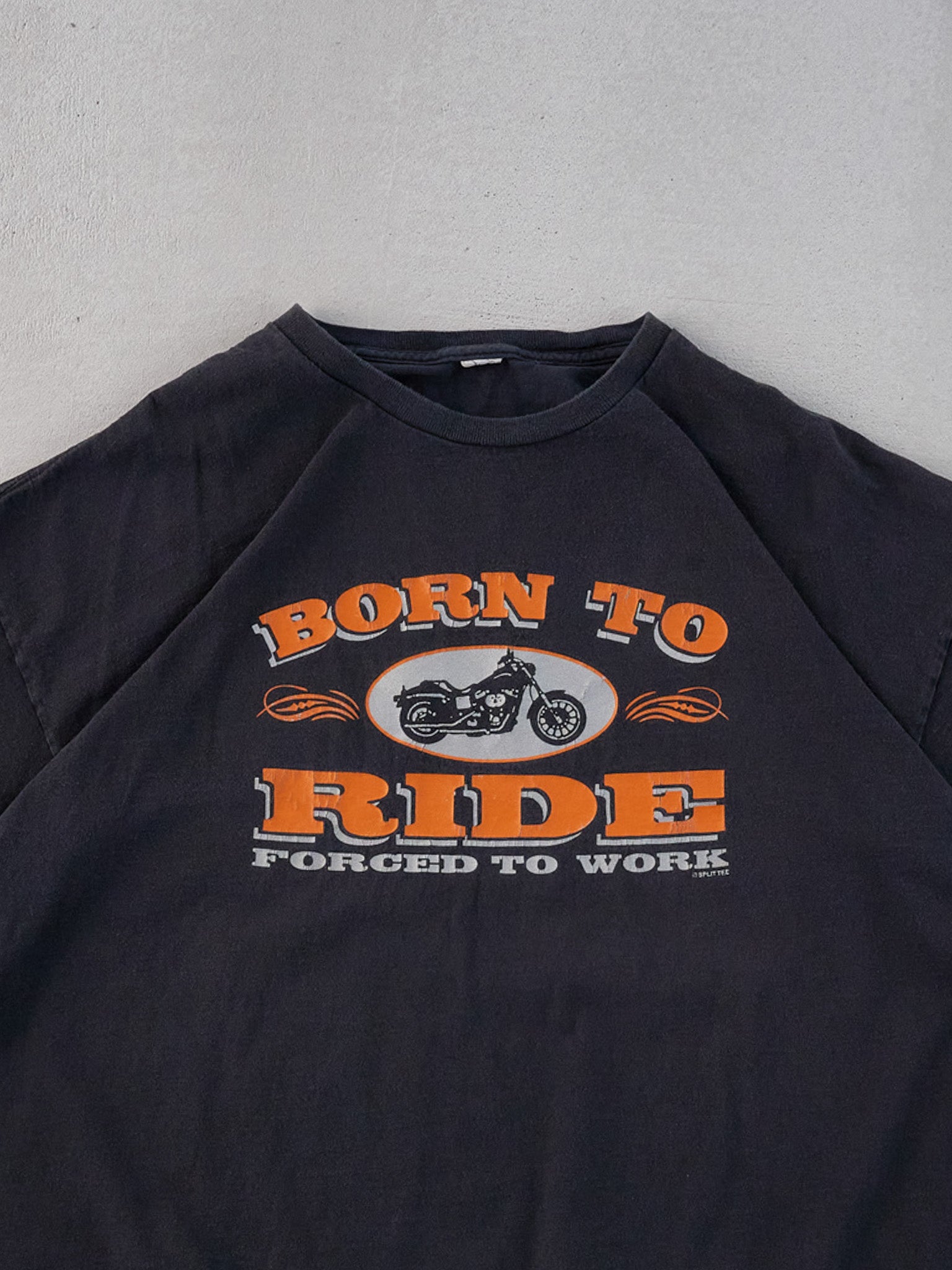 Vintage 90s Black and Orange "Born to Ride" Biker Graphic Tee (L)