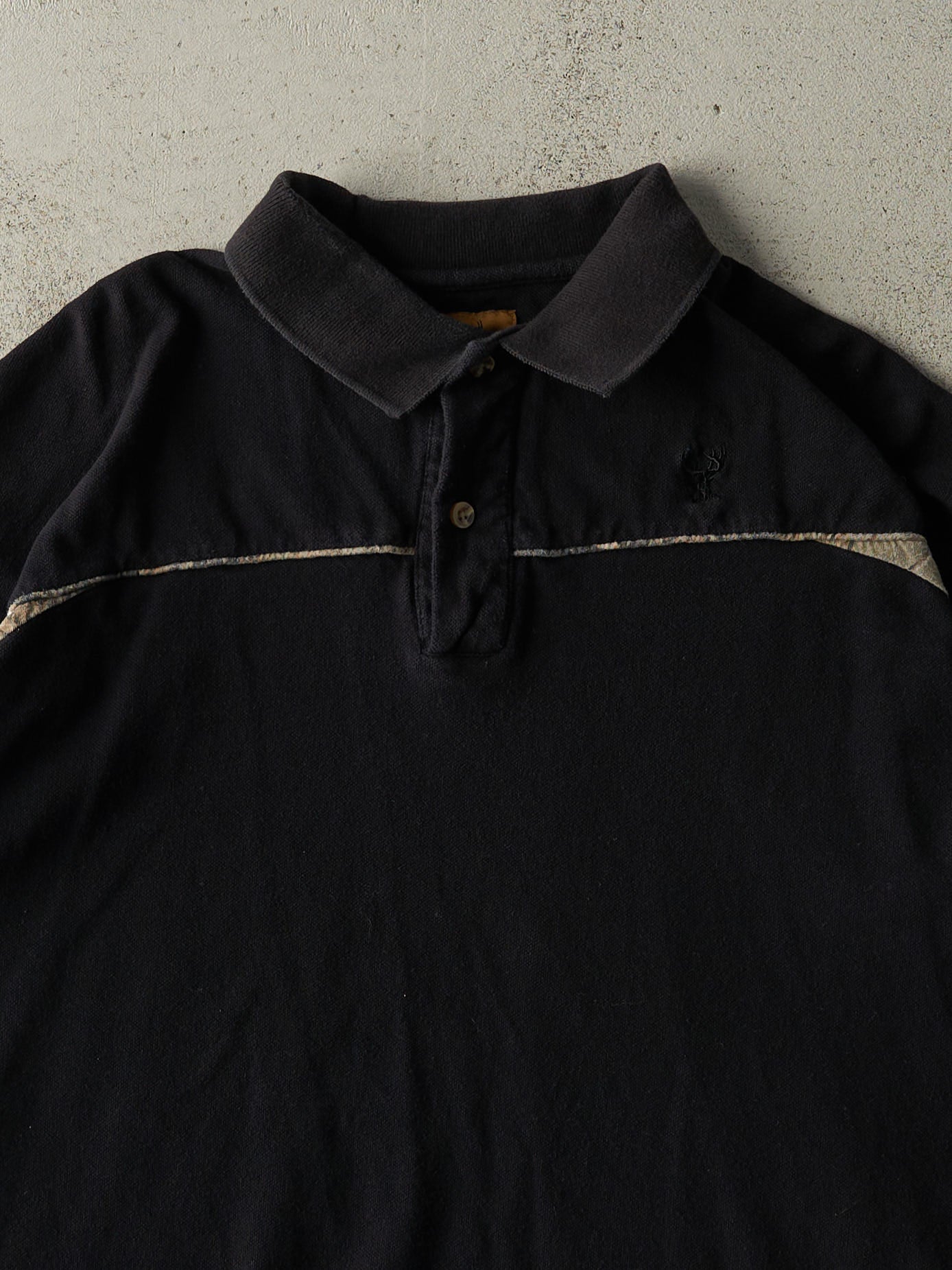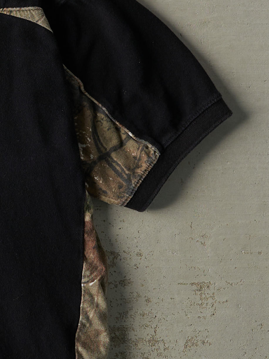 Vintage 90s Black & Camo Buck Wear x Realtree Quarter Button Tee (L/XL)