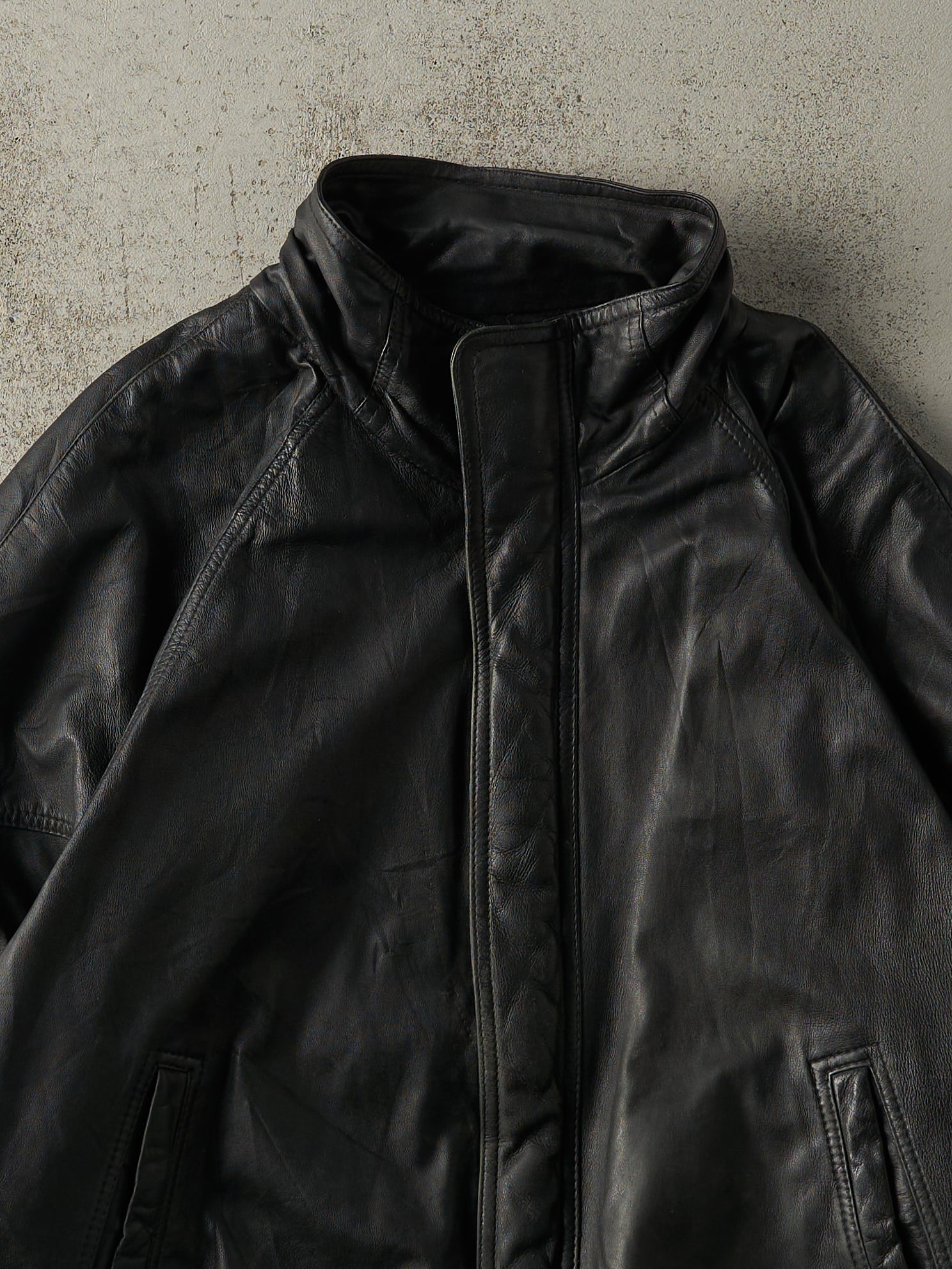 Vintage 90s Black Canada Sportswear Lambs Leather Jacket (XL)