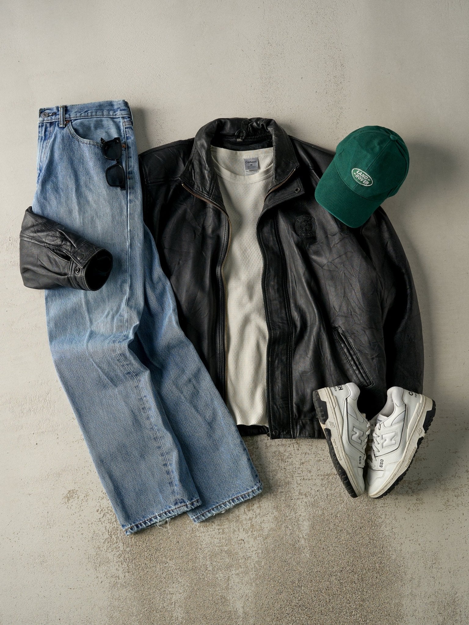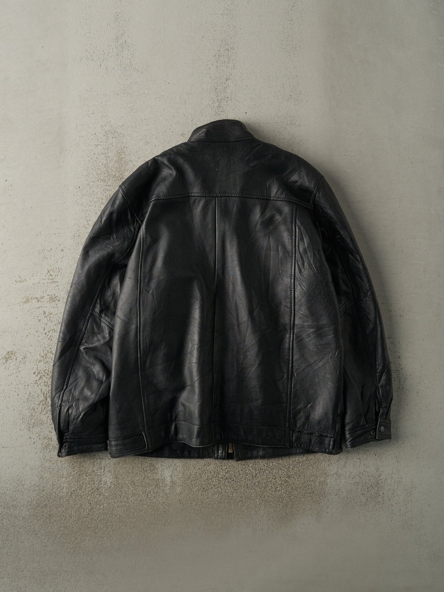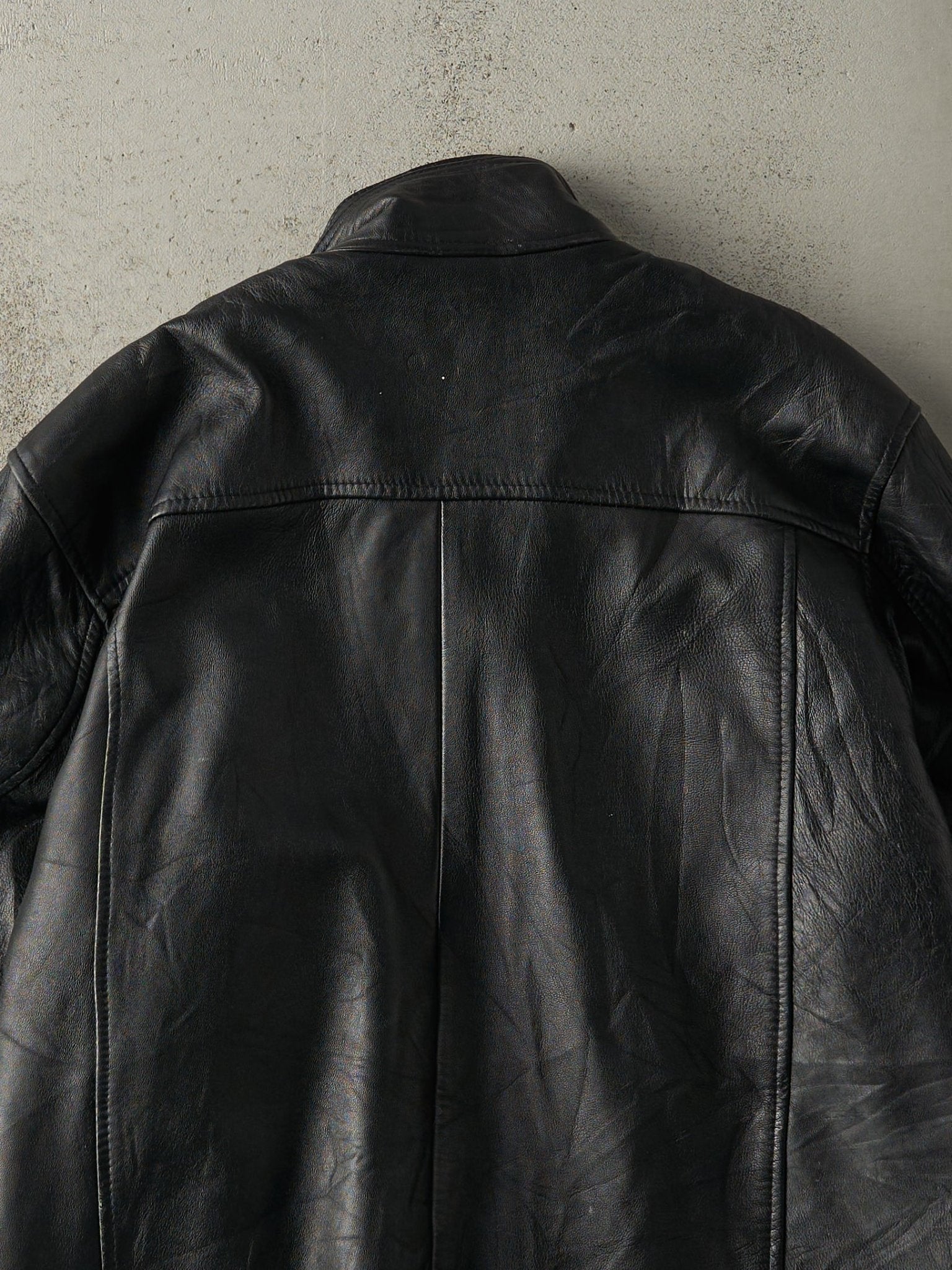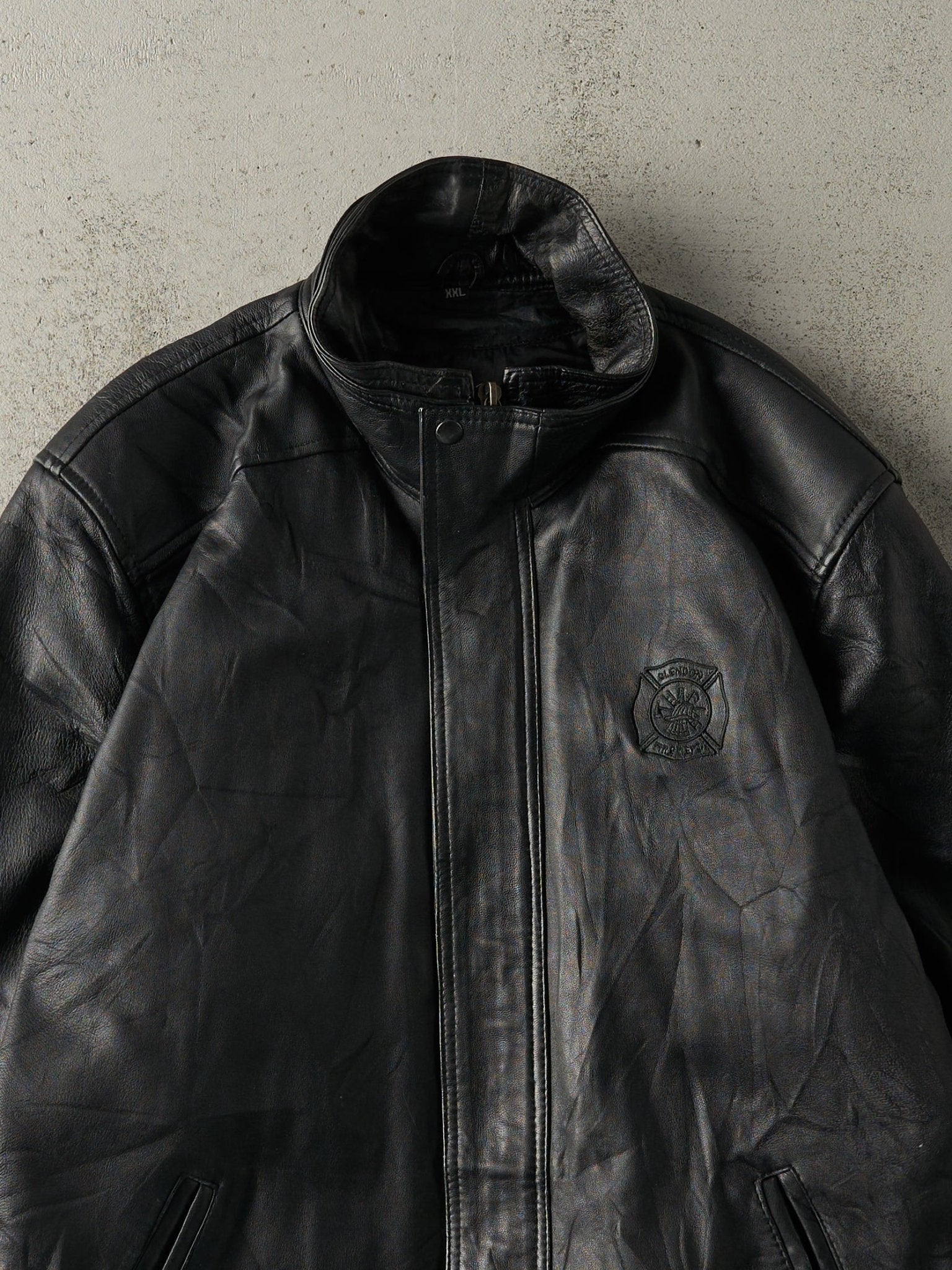 Vintage 90s Black Embroidered Fire Dept Leather Jacket (XL)