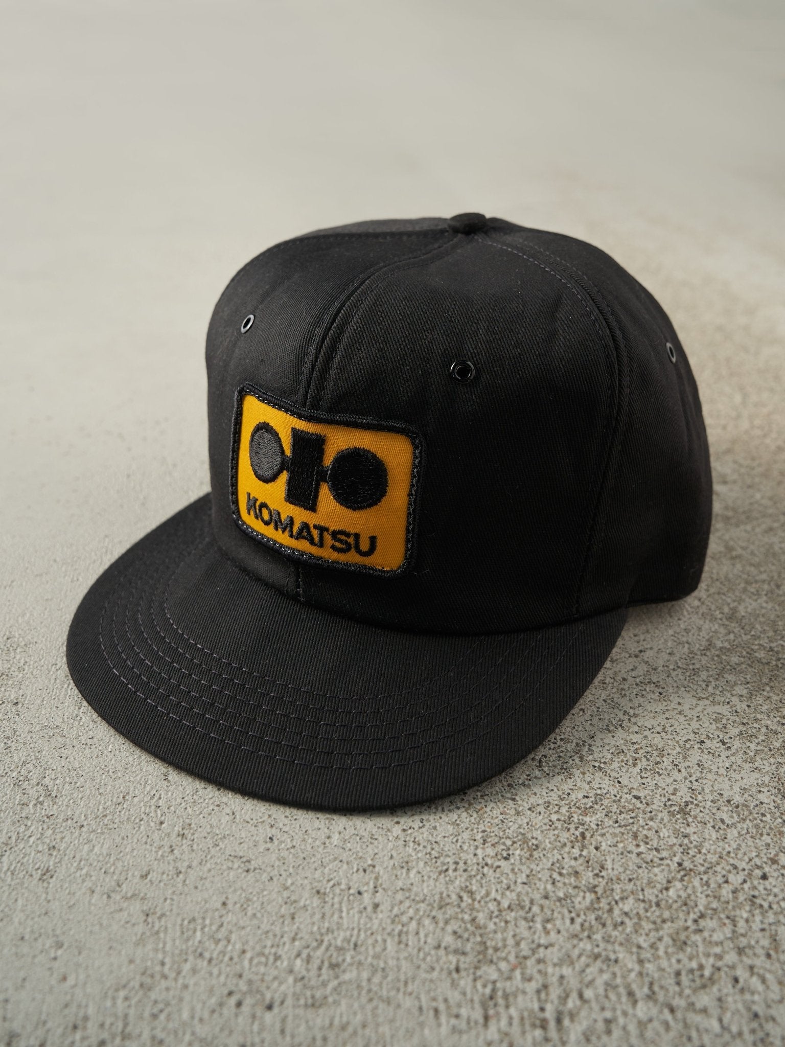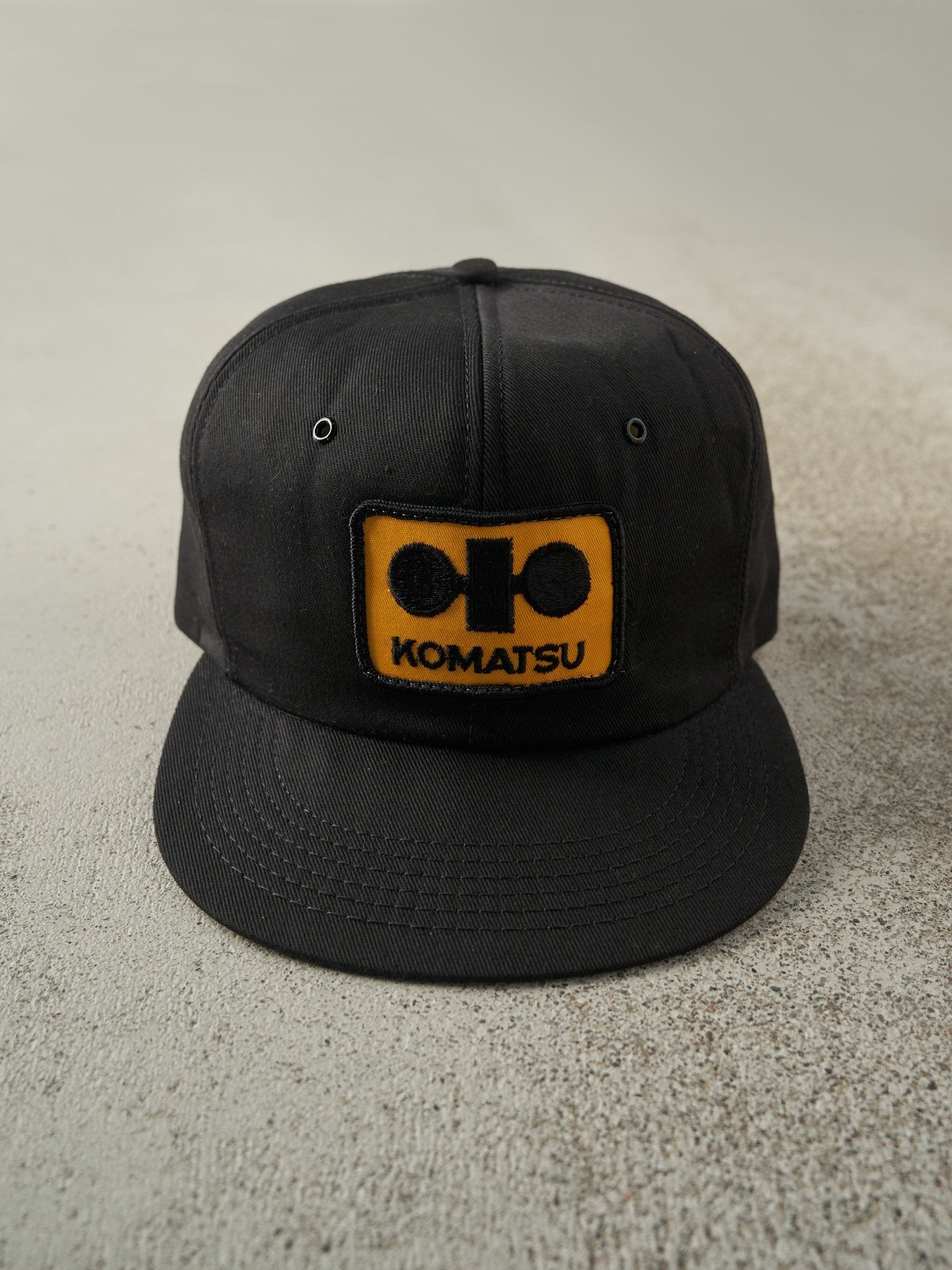 Vintage 90s Black Komatsu Foam Snapback Hat