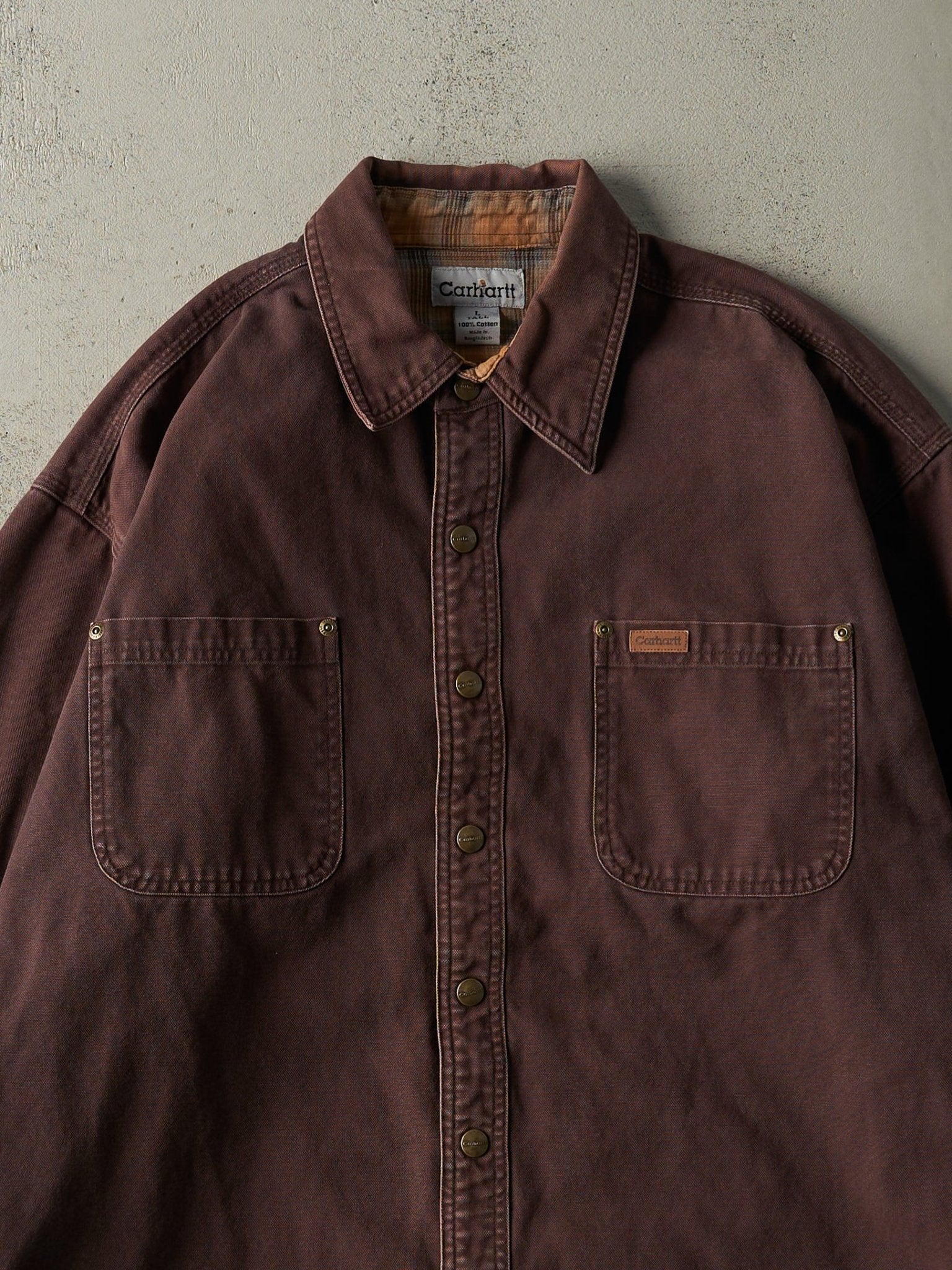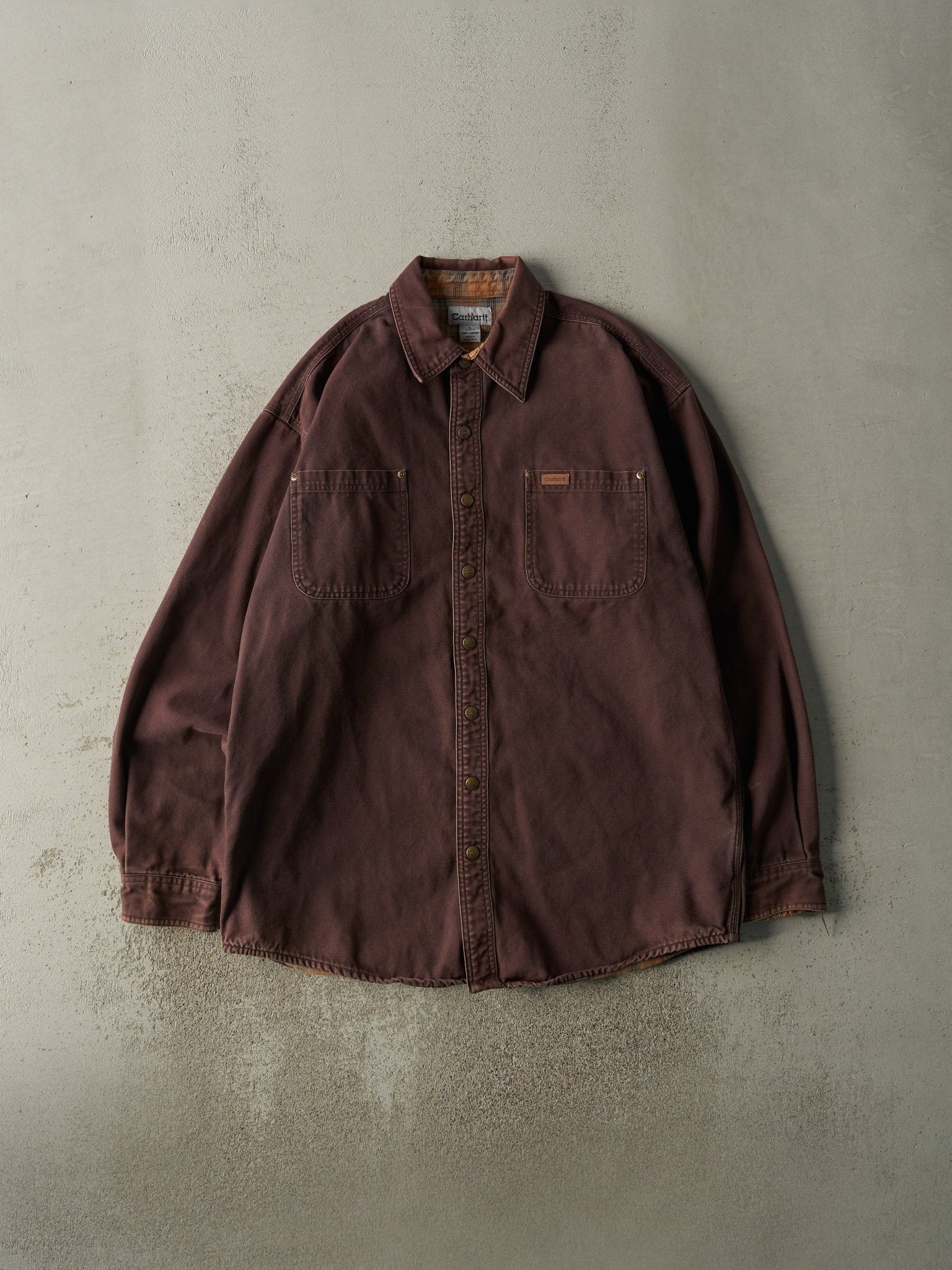 Vintage 90s Brown Flannel Lined Heavyweight Work Shirt (L/XL)
