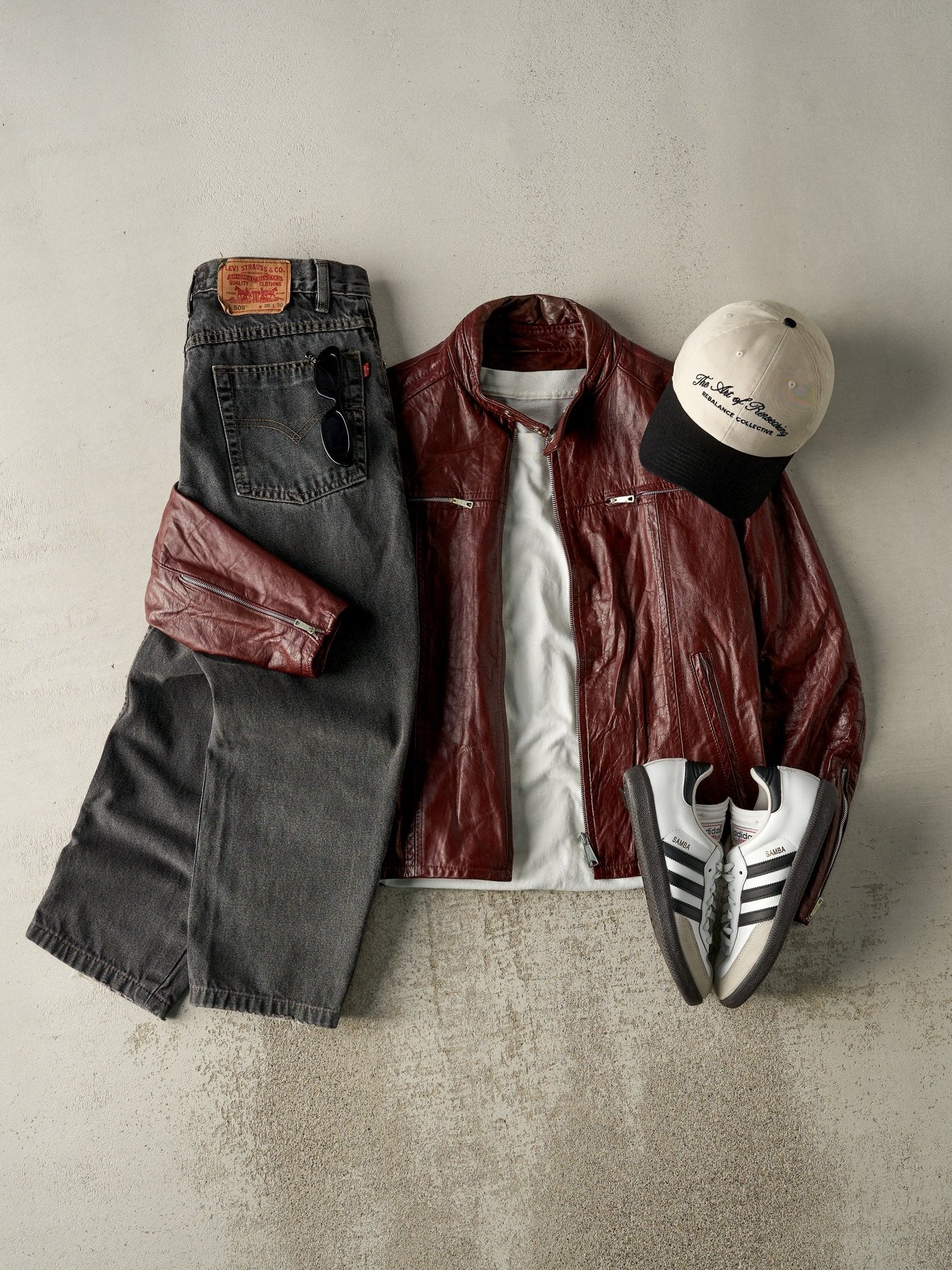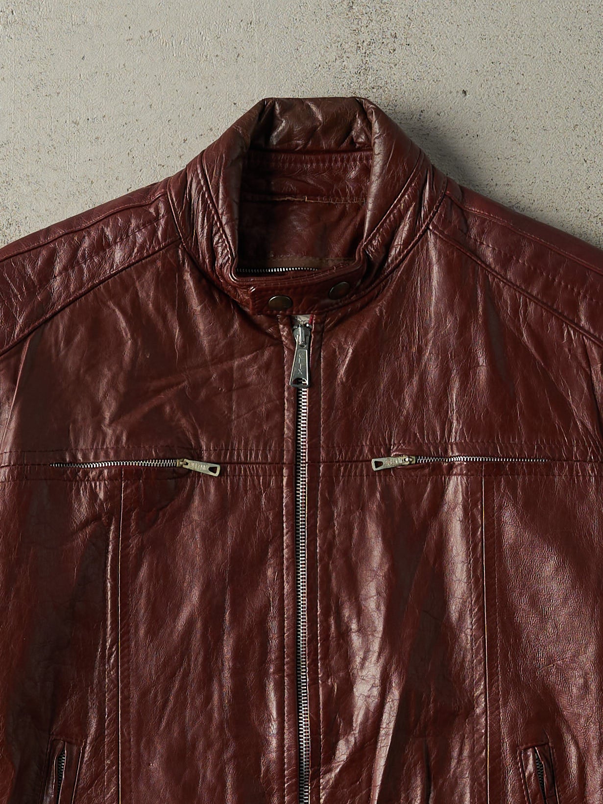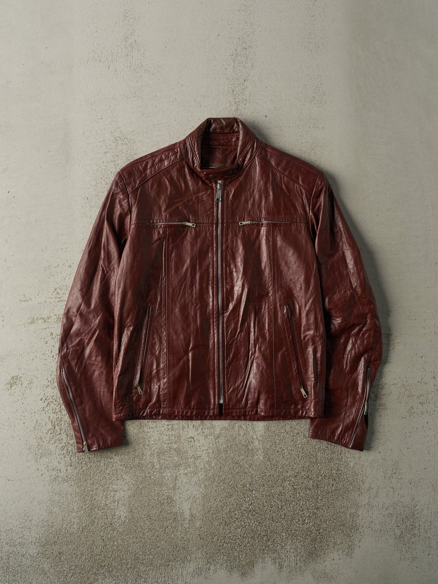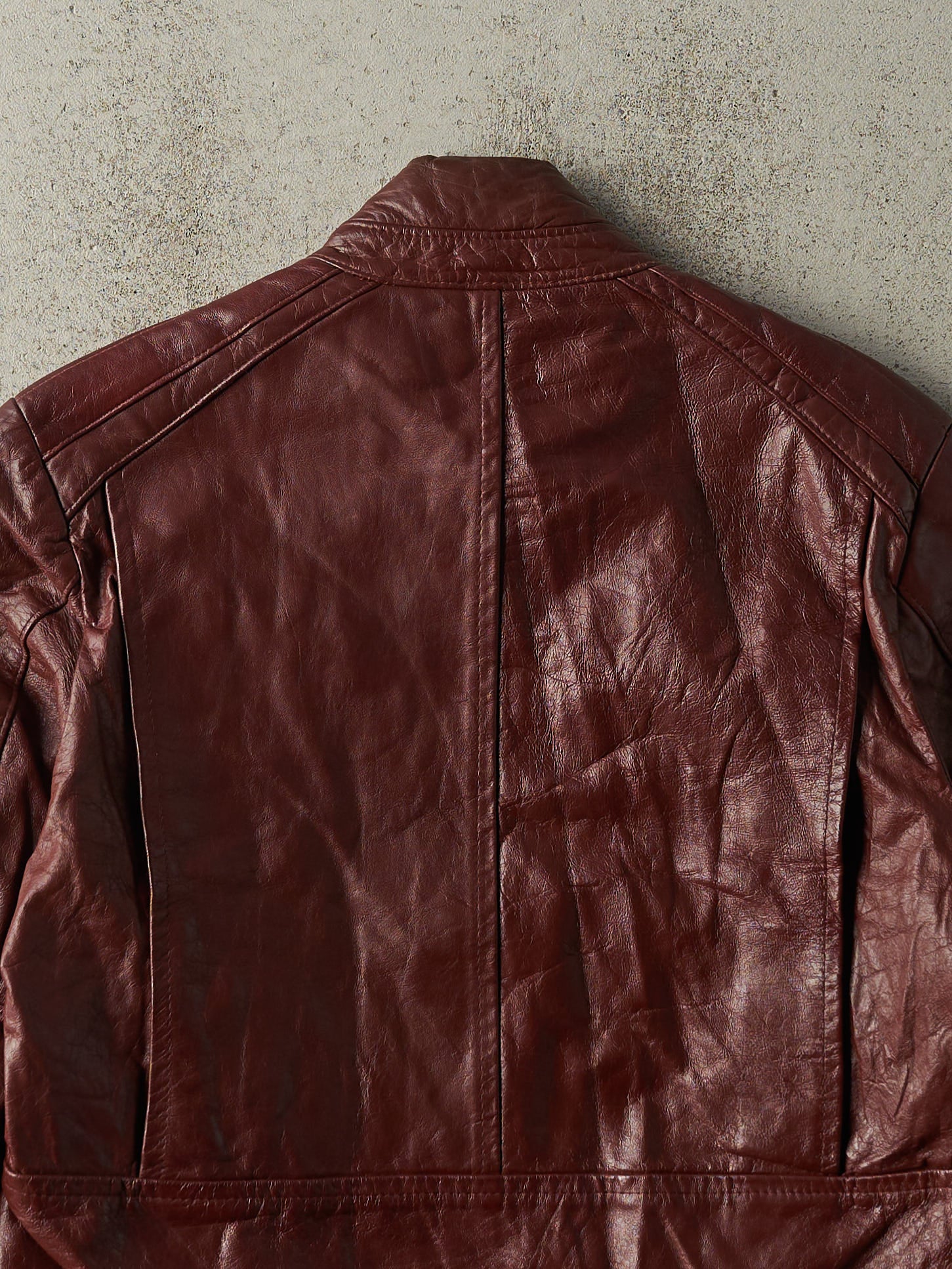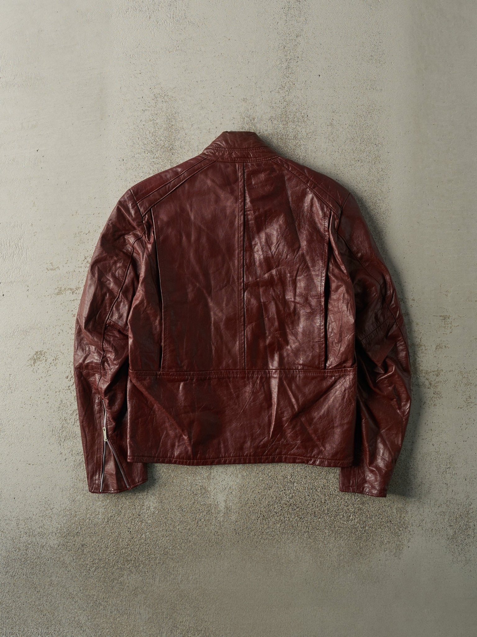 Vintage 90s Burgundy Leather Biker Jacket (S)