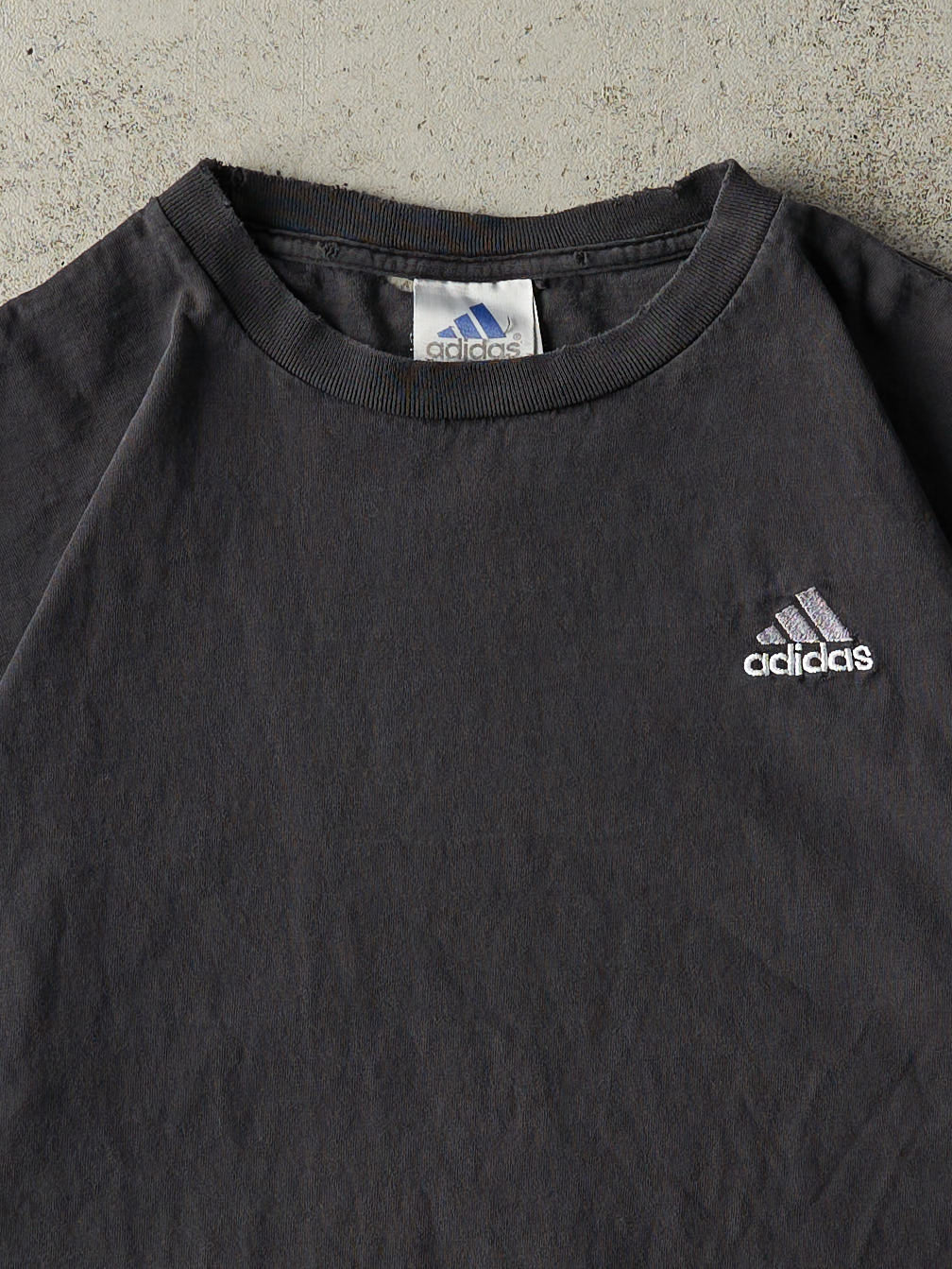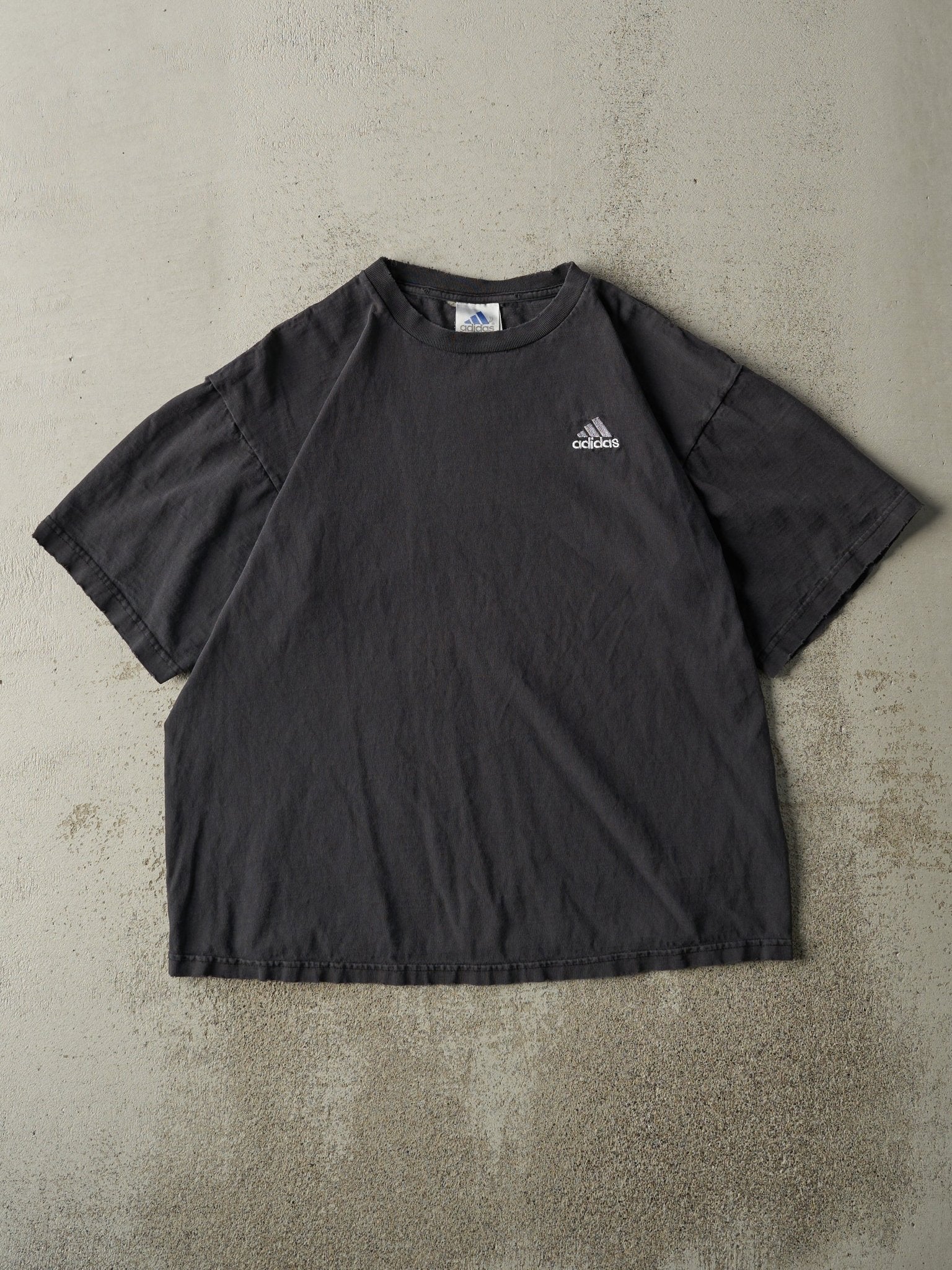 Vintage 90s Faded Black Adidas Embroidered Tee (M)