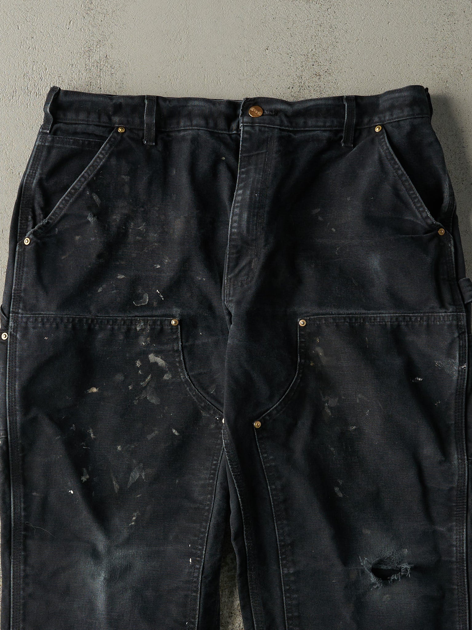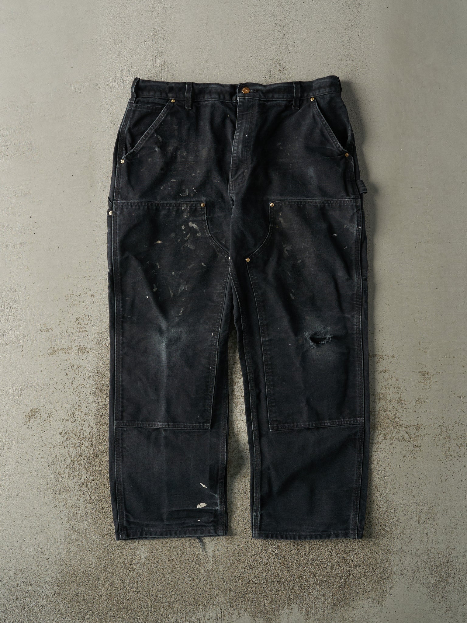 Vintage 90s Faded Black Carhartt Double Knee Carpenter Pants (36.5x28.5)