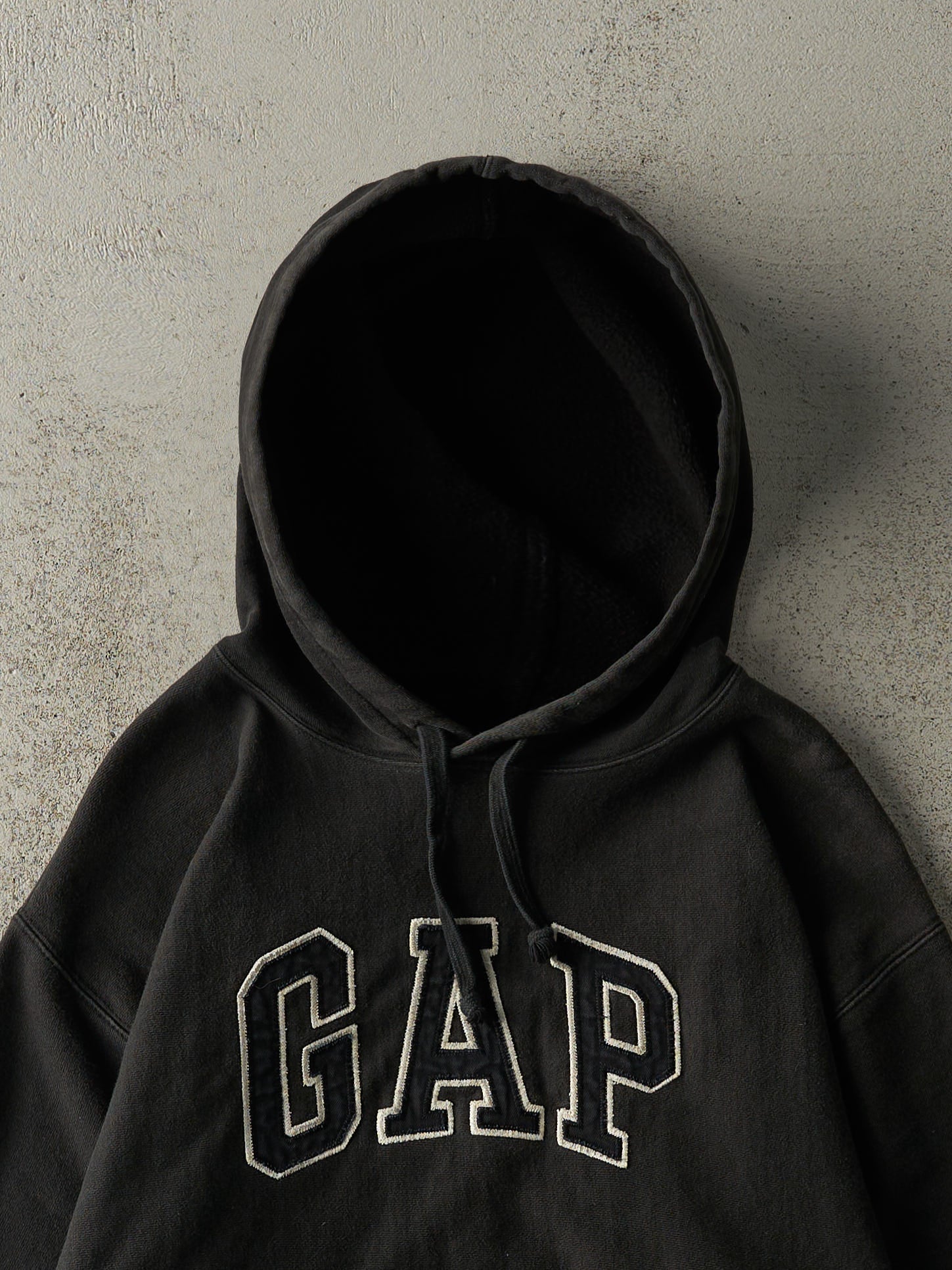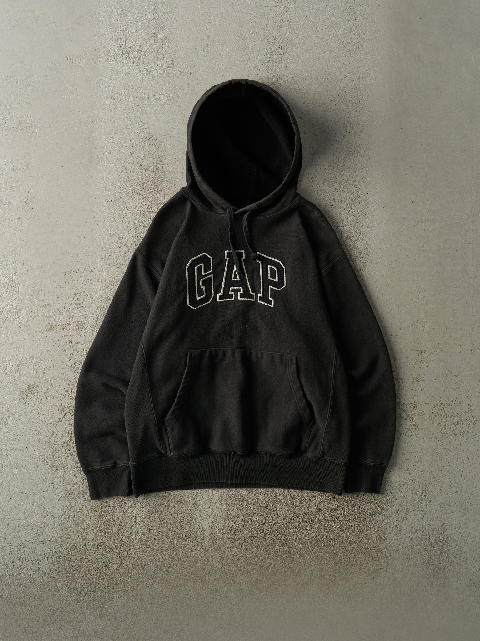 Vintage 90s Faded Black Embroidered Gap Hoodie (M)