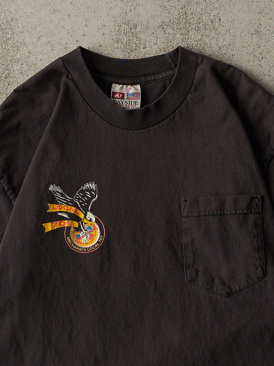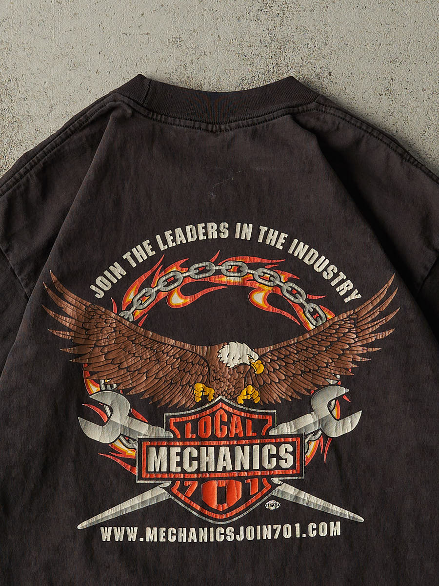 Vintage 90s Faded Black Mechanics Union Harley Davidson Flip Pocket Tee (M/L)