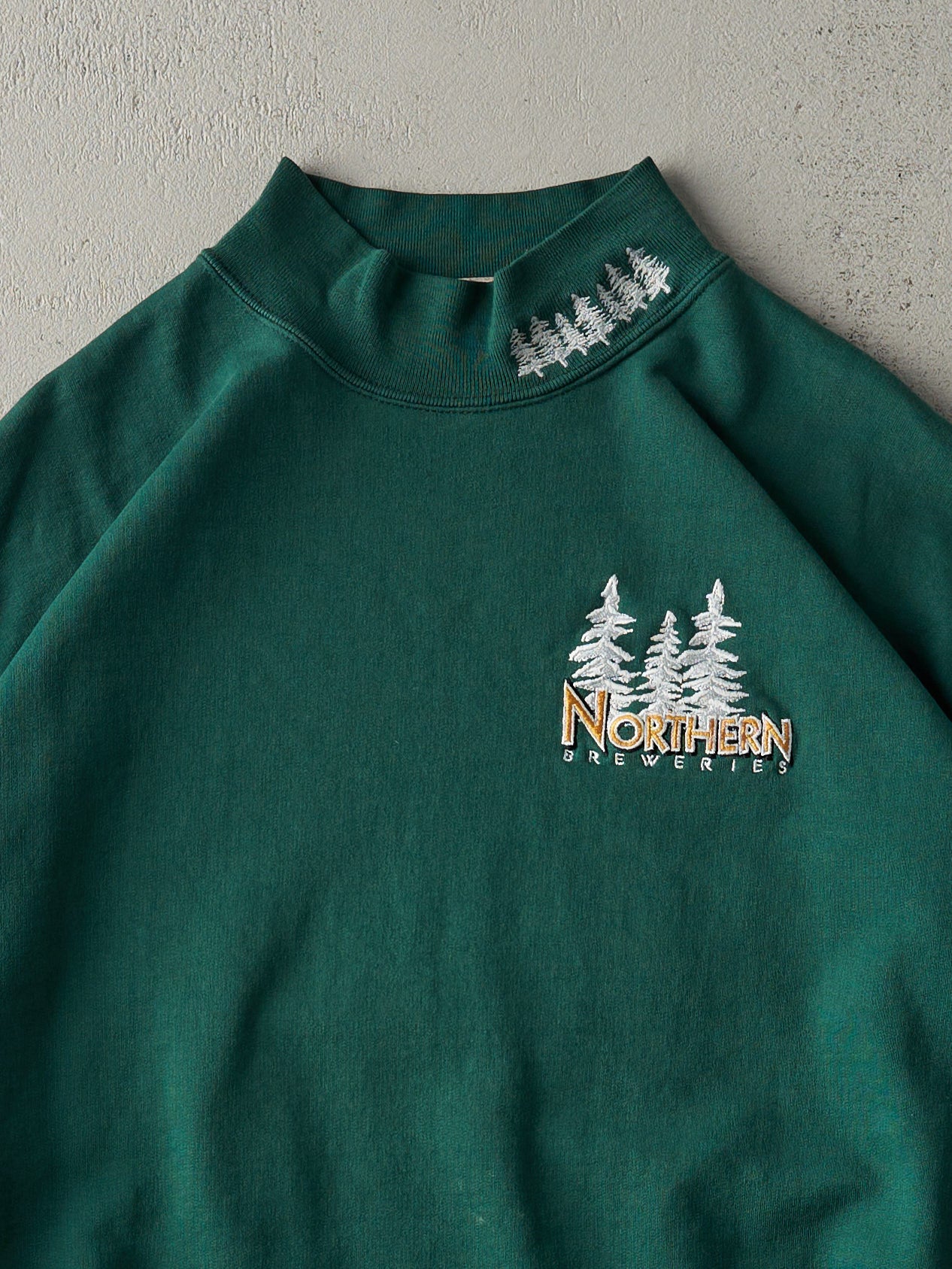 Vintage 90s Green Embroidered Northern Breweries Mock Neck Crewneck (XL)