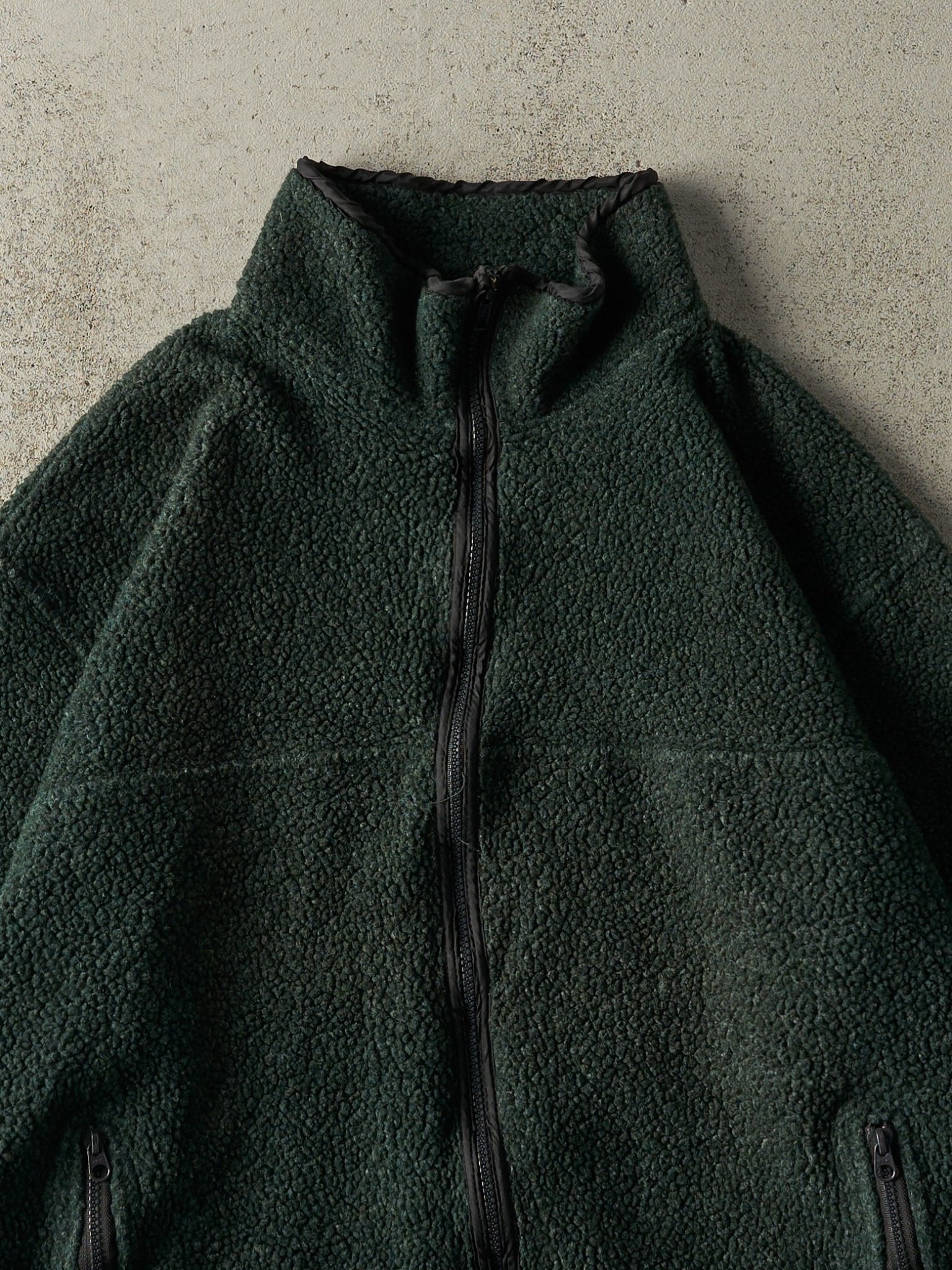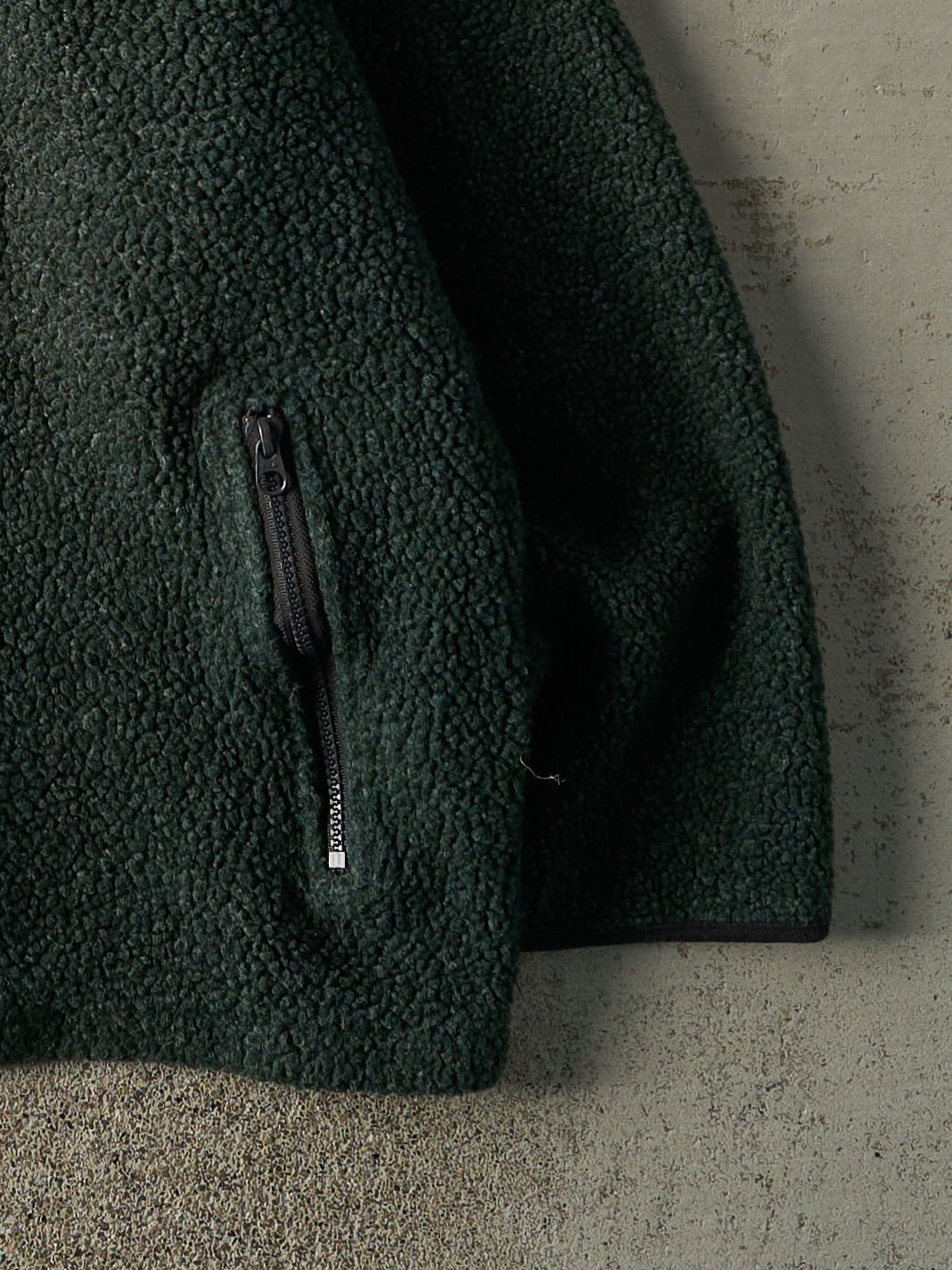 Vintage 90s Green Sherpa Zip Up Fleece Sweater (XL)