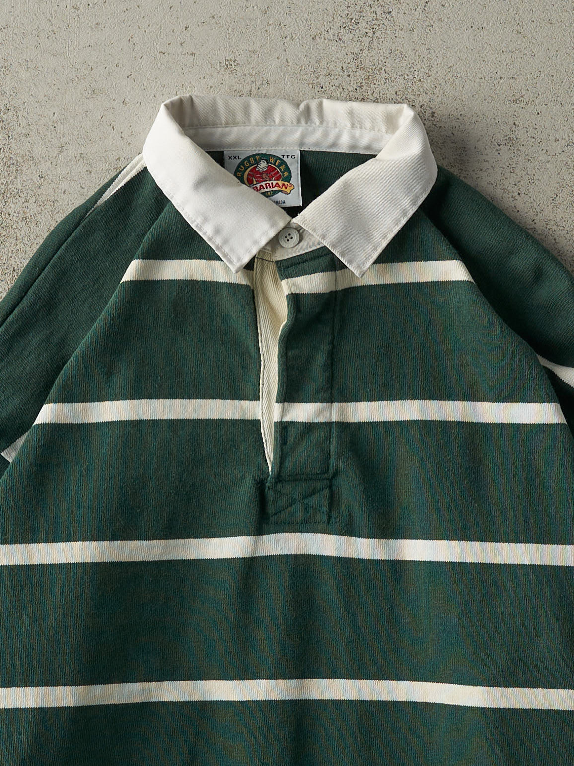 Vintage 90s Green & White Quarter Button Rugby Shirt (XL)