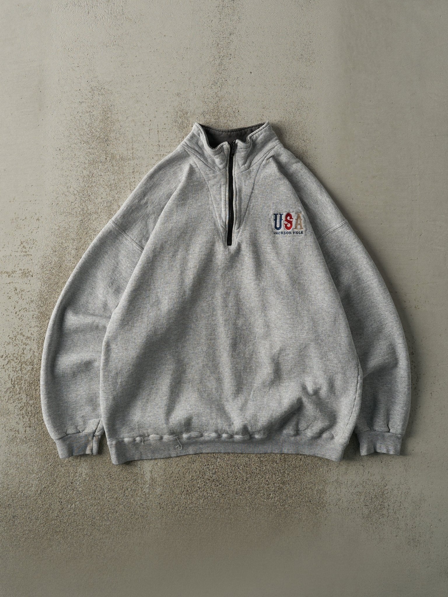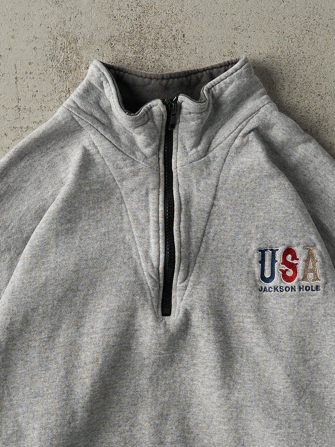 Vintage 90s Grey Embroidered Jackson Hole Quarter Zip (L)