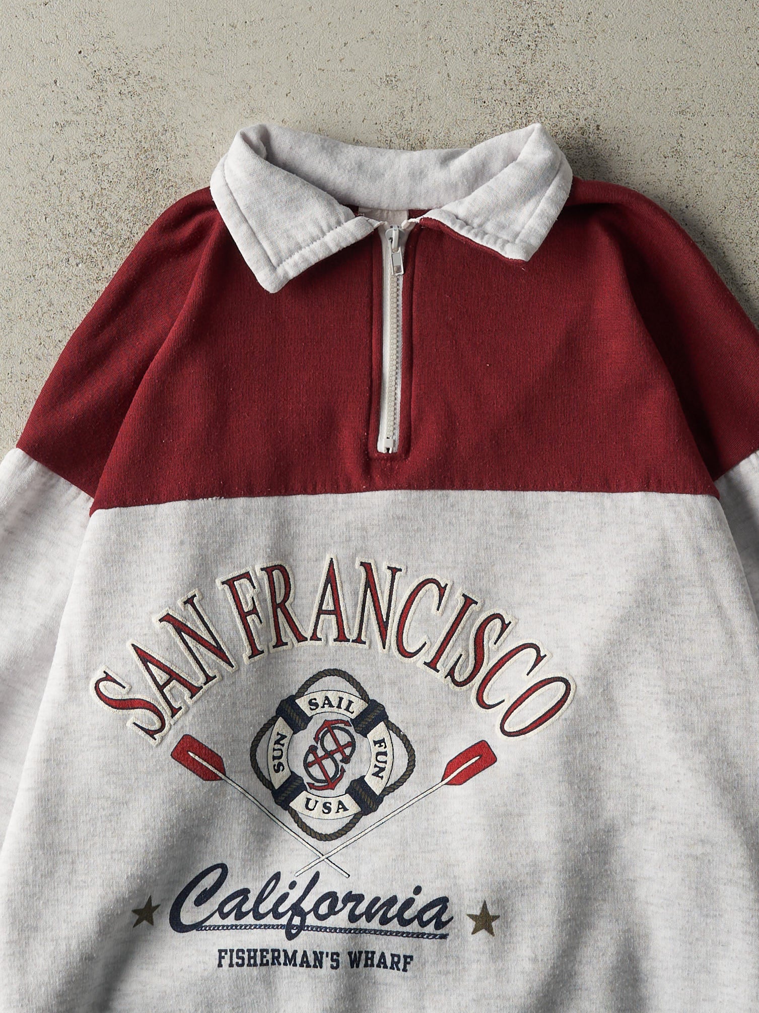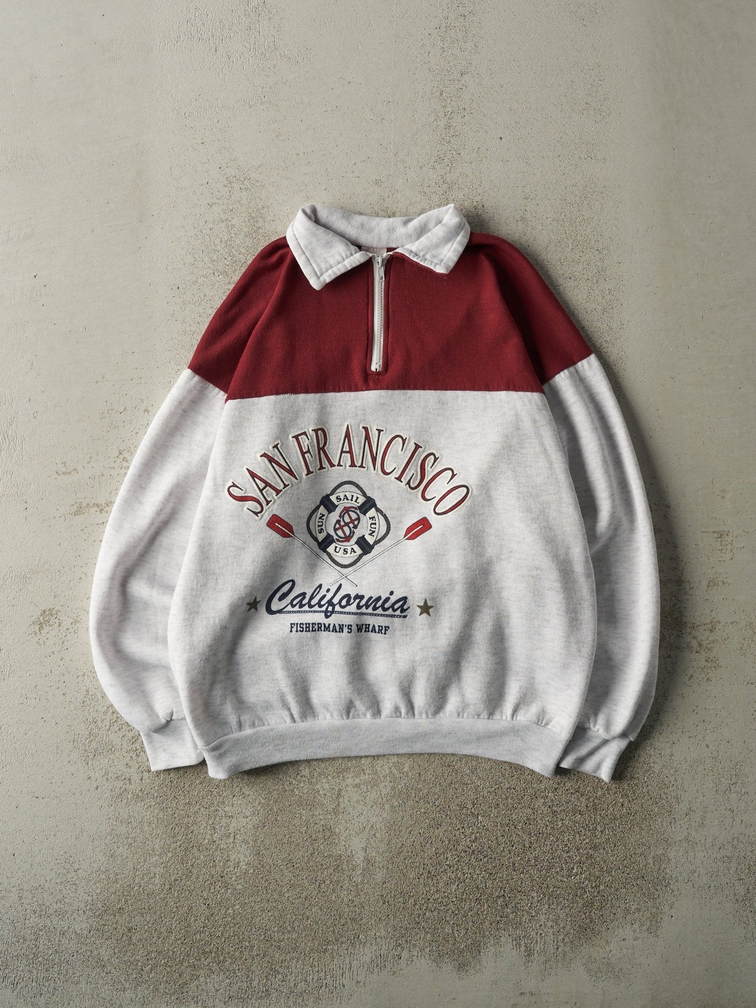 Vintage 90s Heather Grey & Burgundy San Francisco Quarter Zip (L)