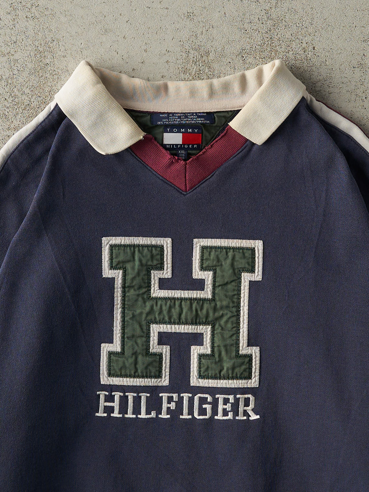 Vintage 90s Navy Blue Emboridered Tommy Hilfiger Rugby Sweatshirt (XL/XXL)