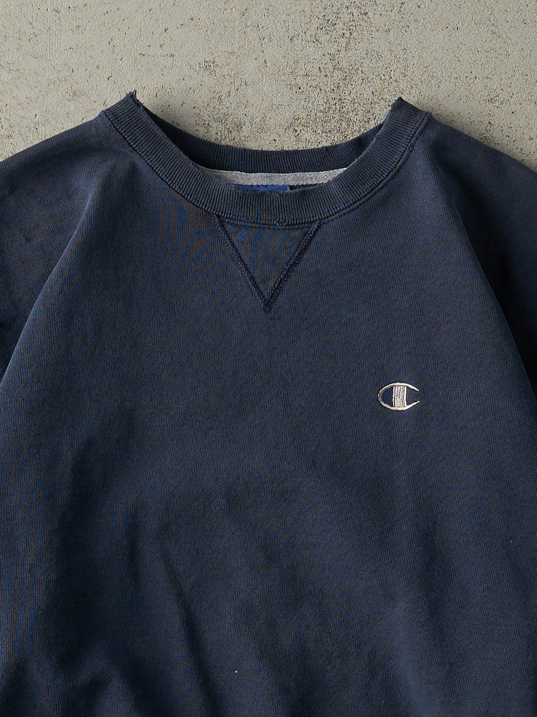 Vintage 90s Navy Blue Embroidered Champion Boxy Crewneck (M)
