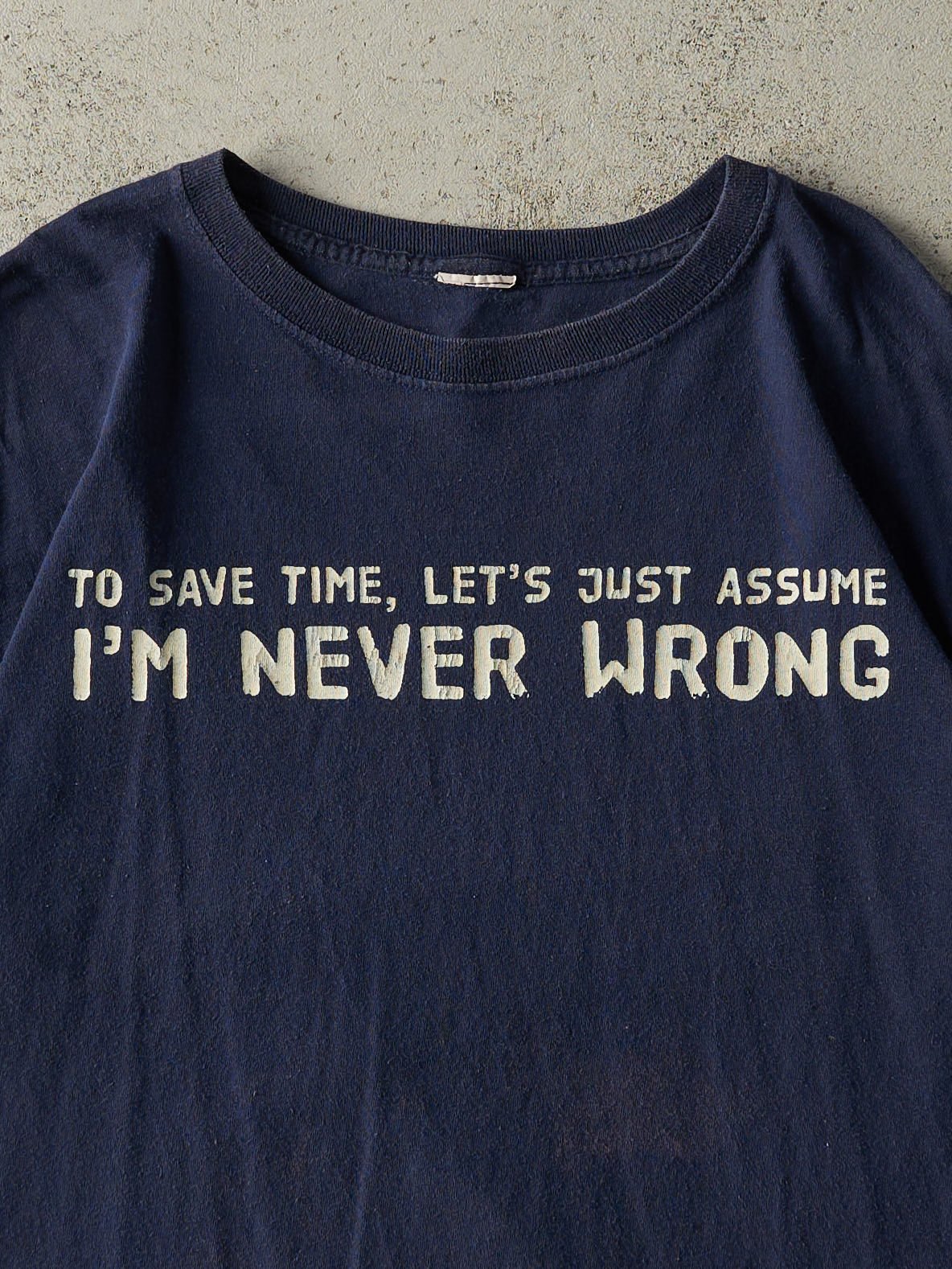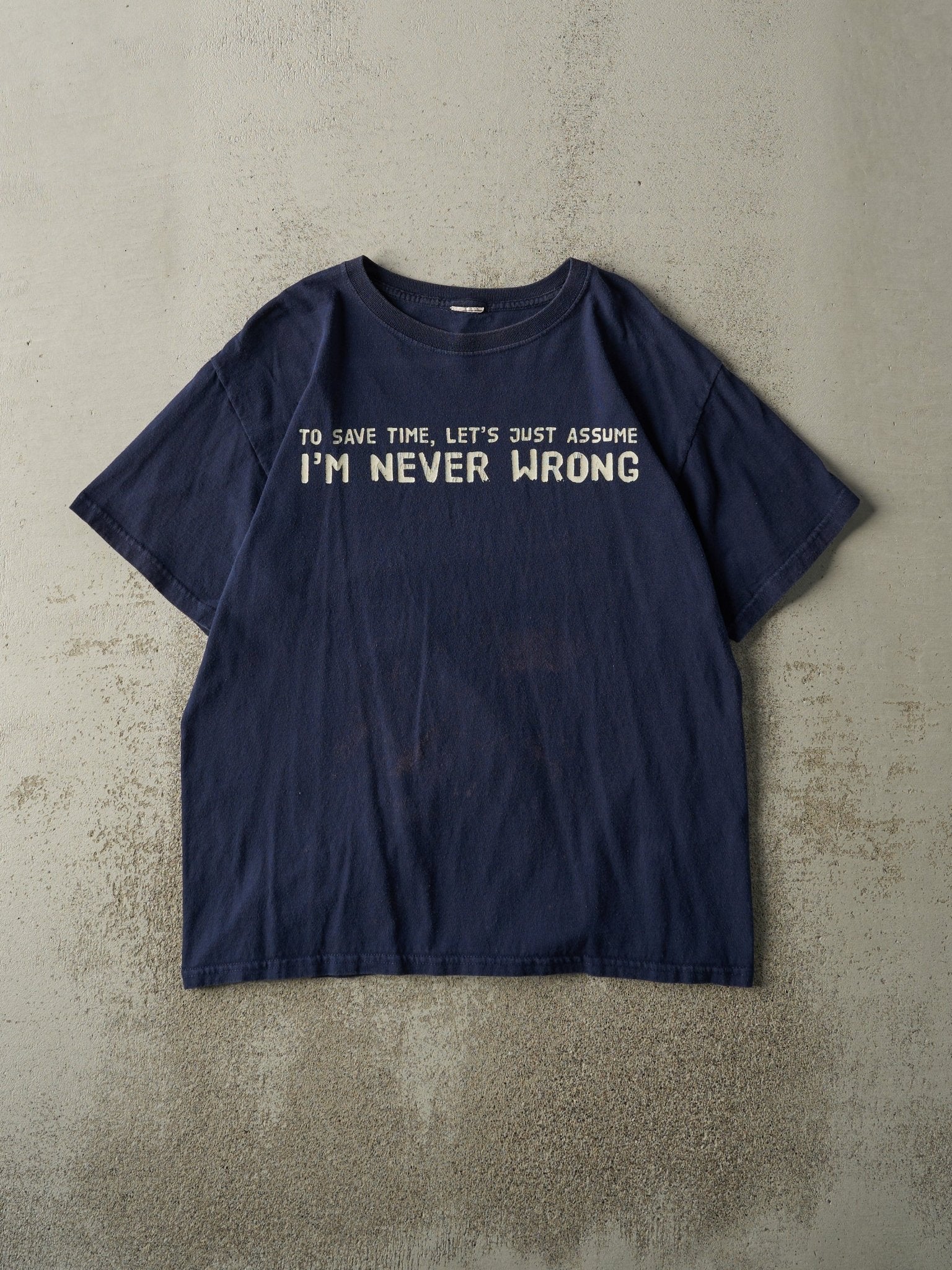Vintage 90s Navy Blue "I'm Never Wrong" Tee (M)