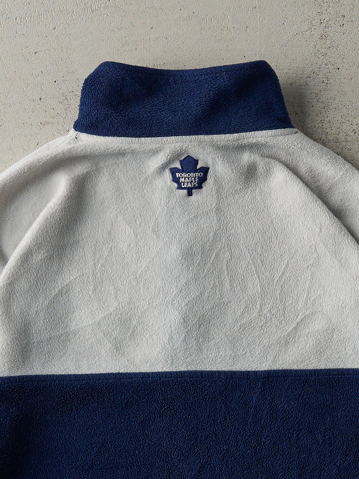 Vintage 90s Navy Blue & White Embroidered Toronto Maple Leafs Quarter Zip Fleece Sweater (L)