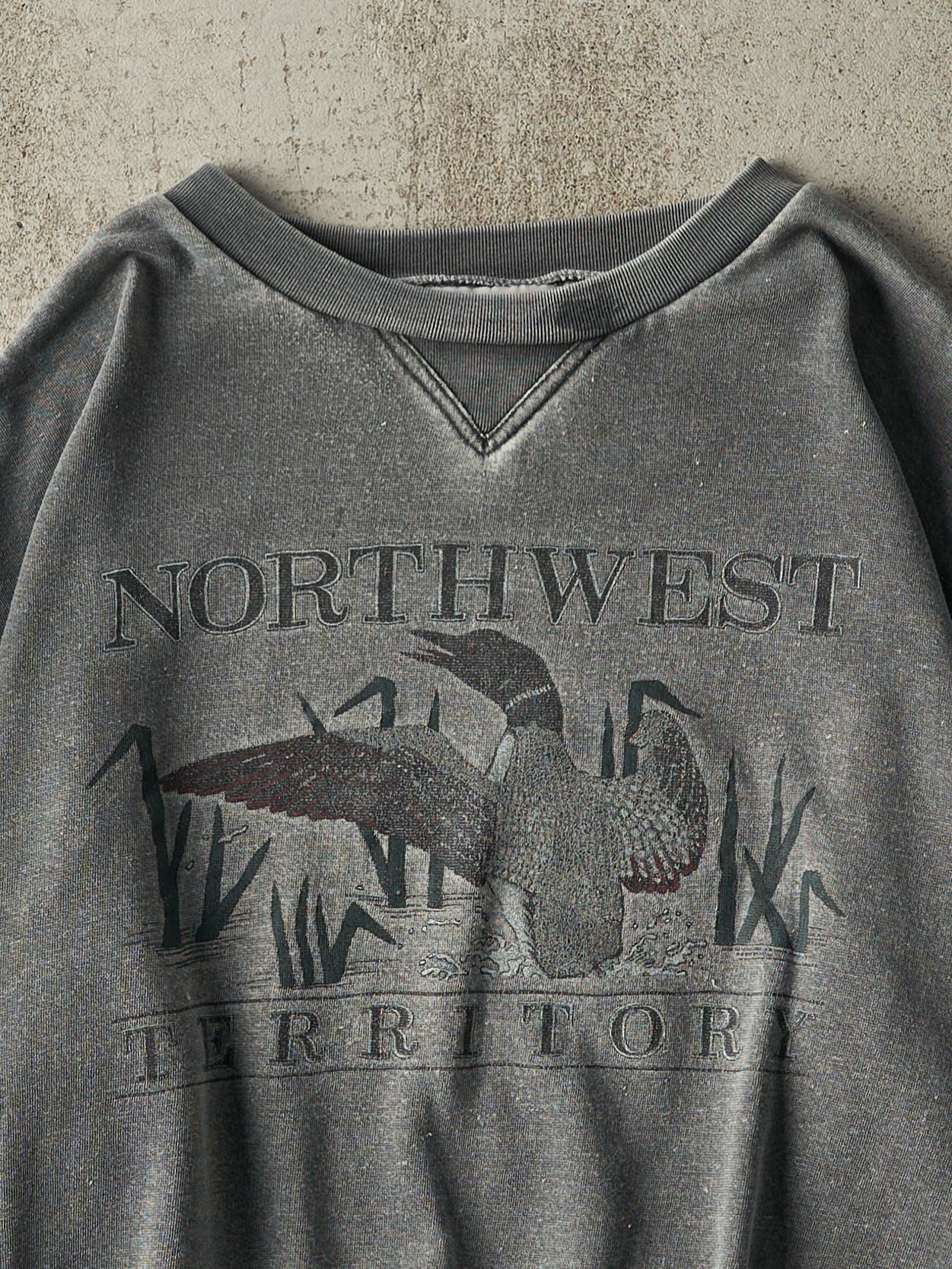 Vintage 90s Washed Grey Northwest Territory Boxy Crewneck (M/L)