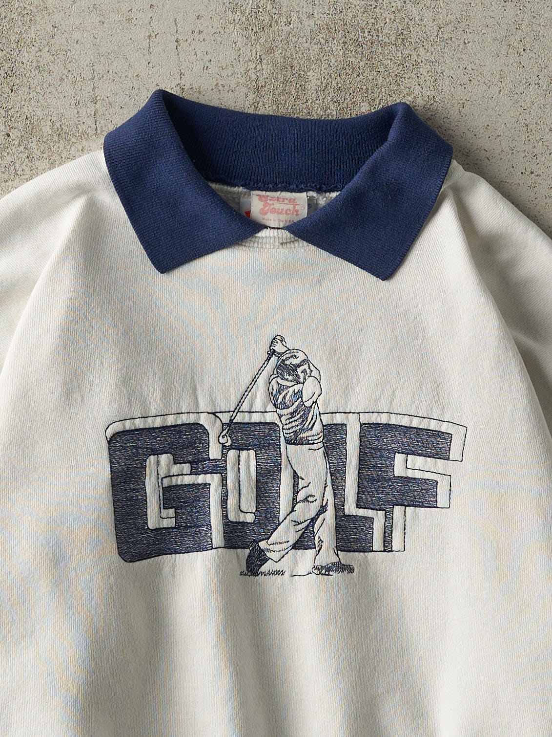 Vintage 90s White & Navy Golf Embroidered Collared Pullover (S/M)