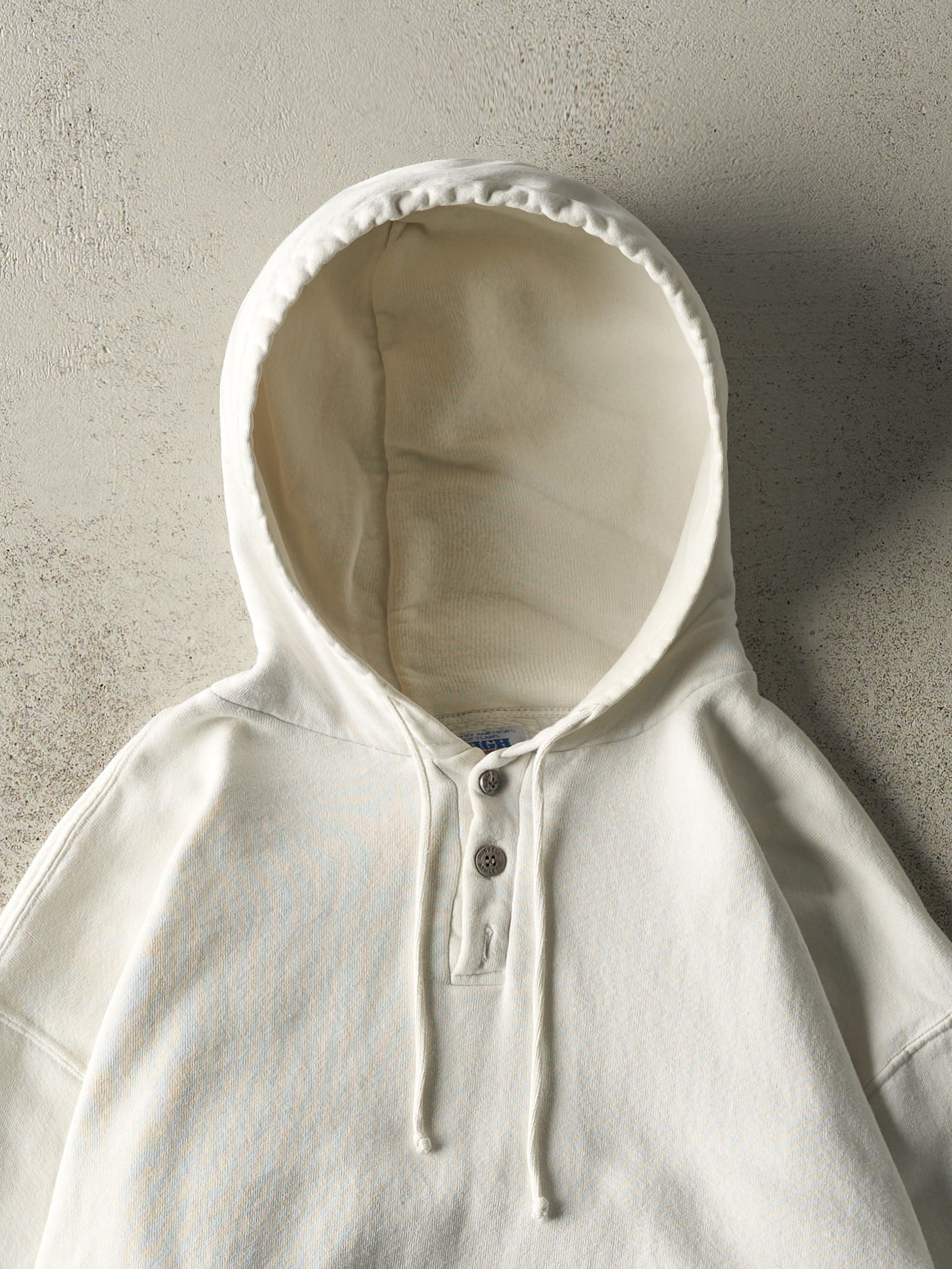 Vintage 90s White Russell Athletic Quarter Button Hoodie (L)