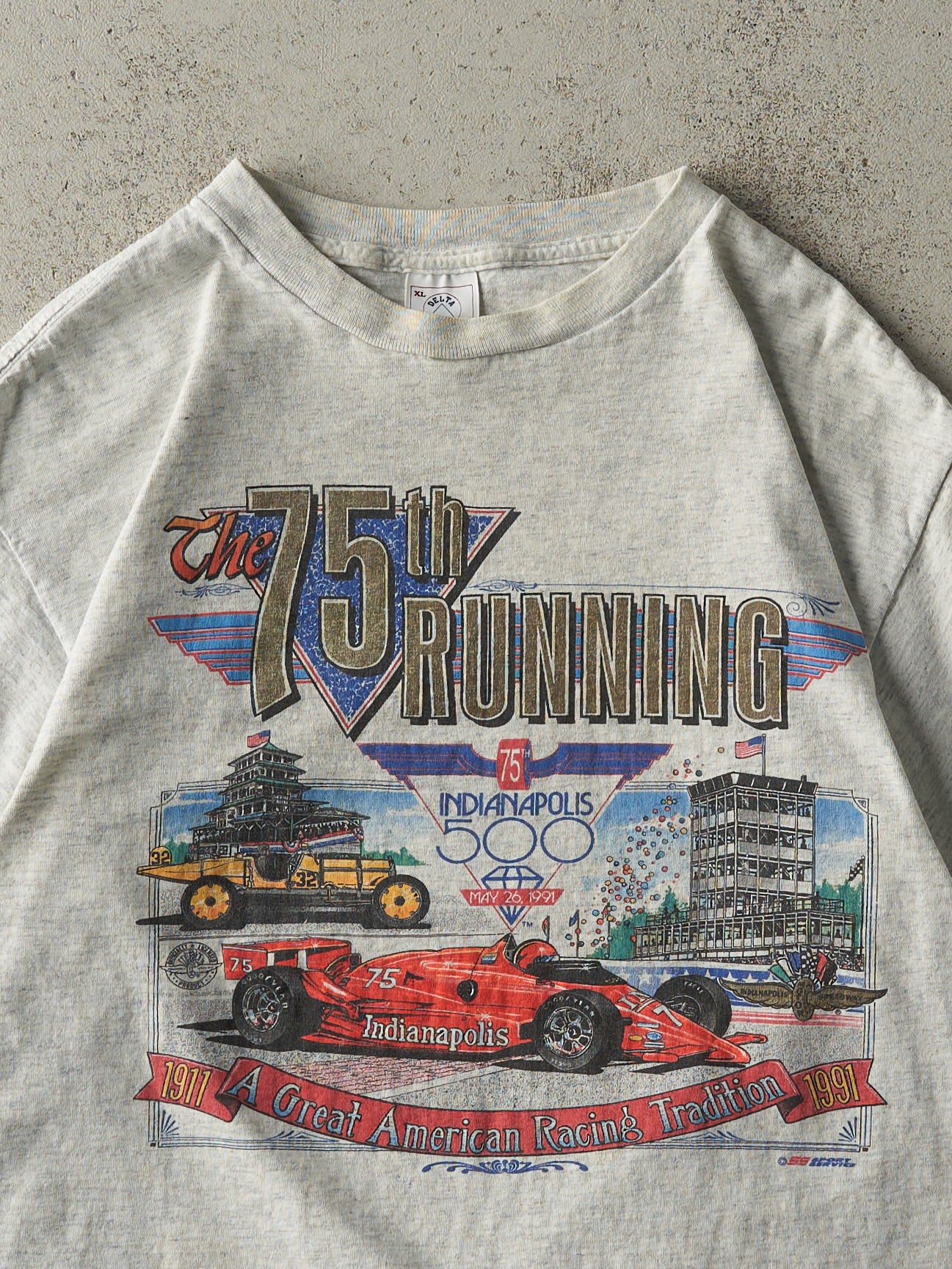 Vintage 91' Heather Grey 75th Indianapolis 500 Racing Tee (M)