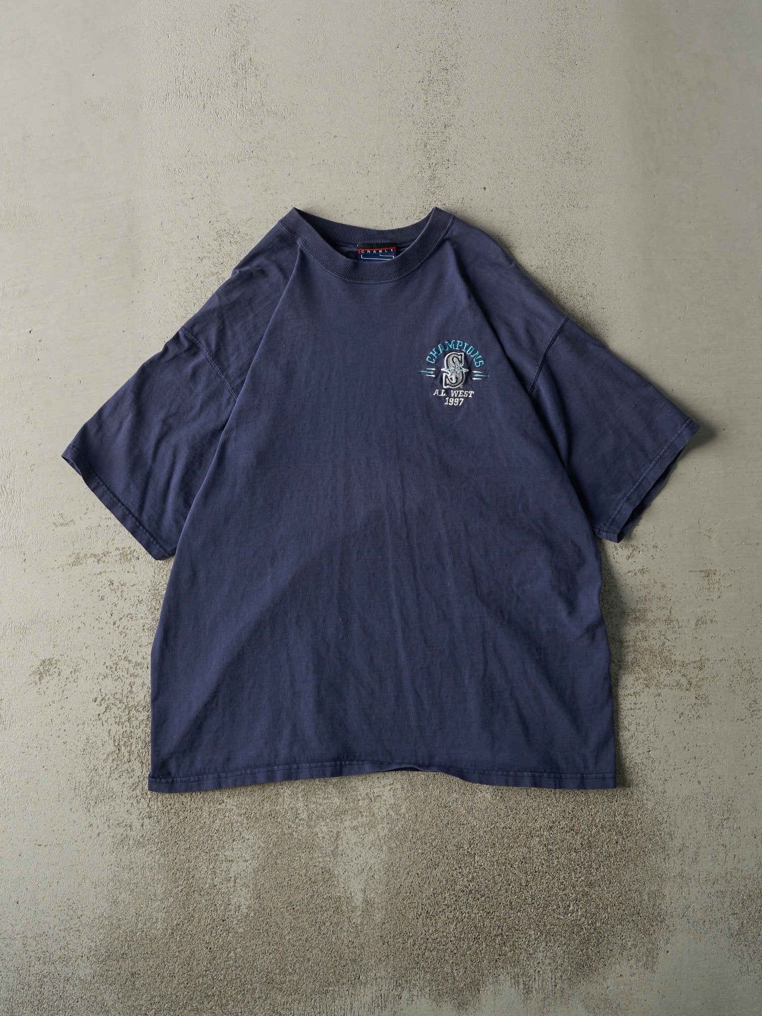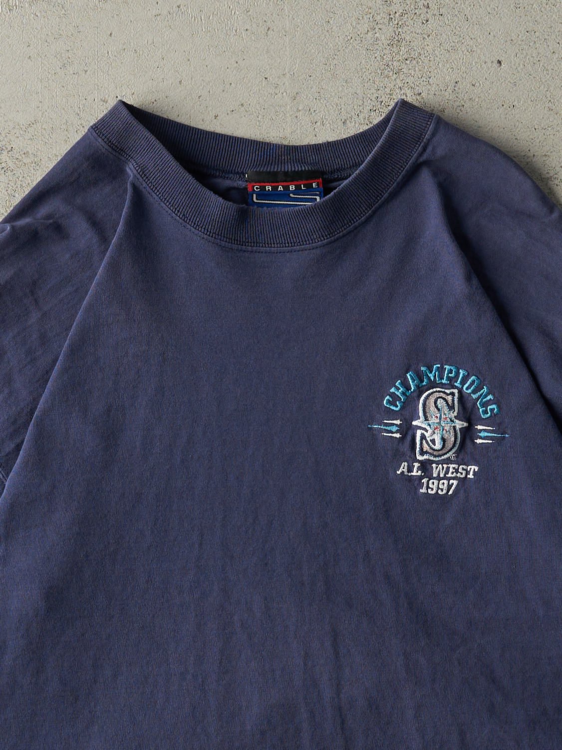 Vintage 97' Navy Blue Embroidered Al West Champions Seattle Mariners Tee (L)
