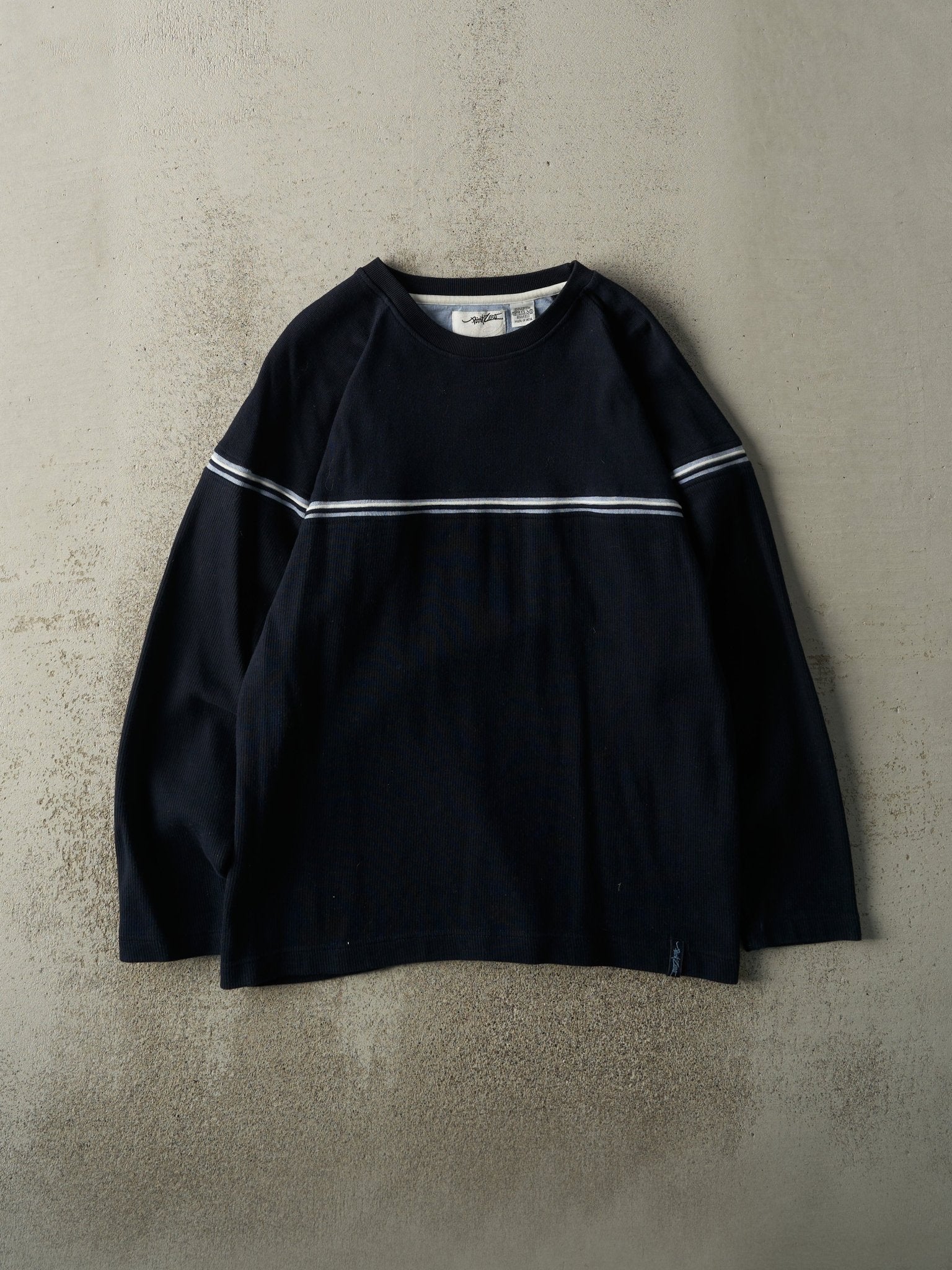Vintage Y2K Black, Blue & White Thermal Long Sleeve (M)